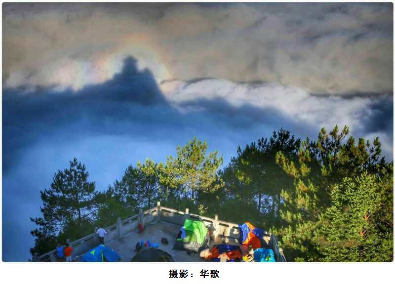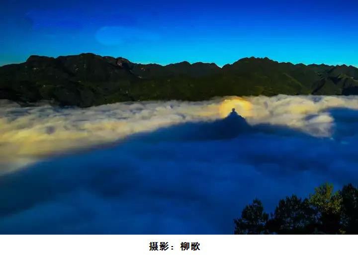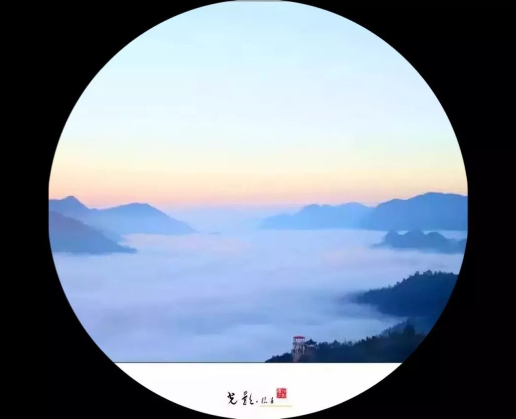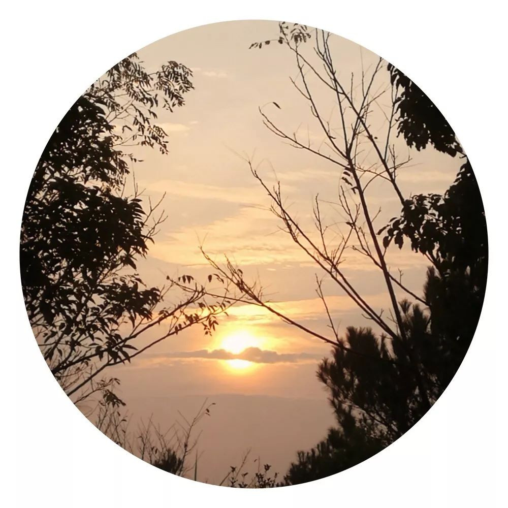 不同于“乍出轻烧天一半,旋行怒射热千芒”的海上日出,这里的日出犹如一幅绮丽恢宏的山水画卷,群山掩映下的那一抹圆日使得整体更为立体。