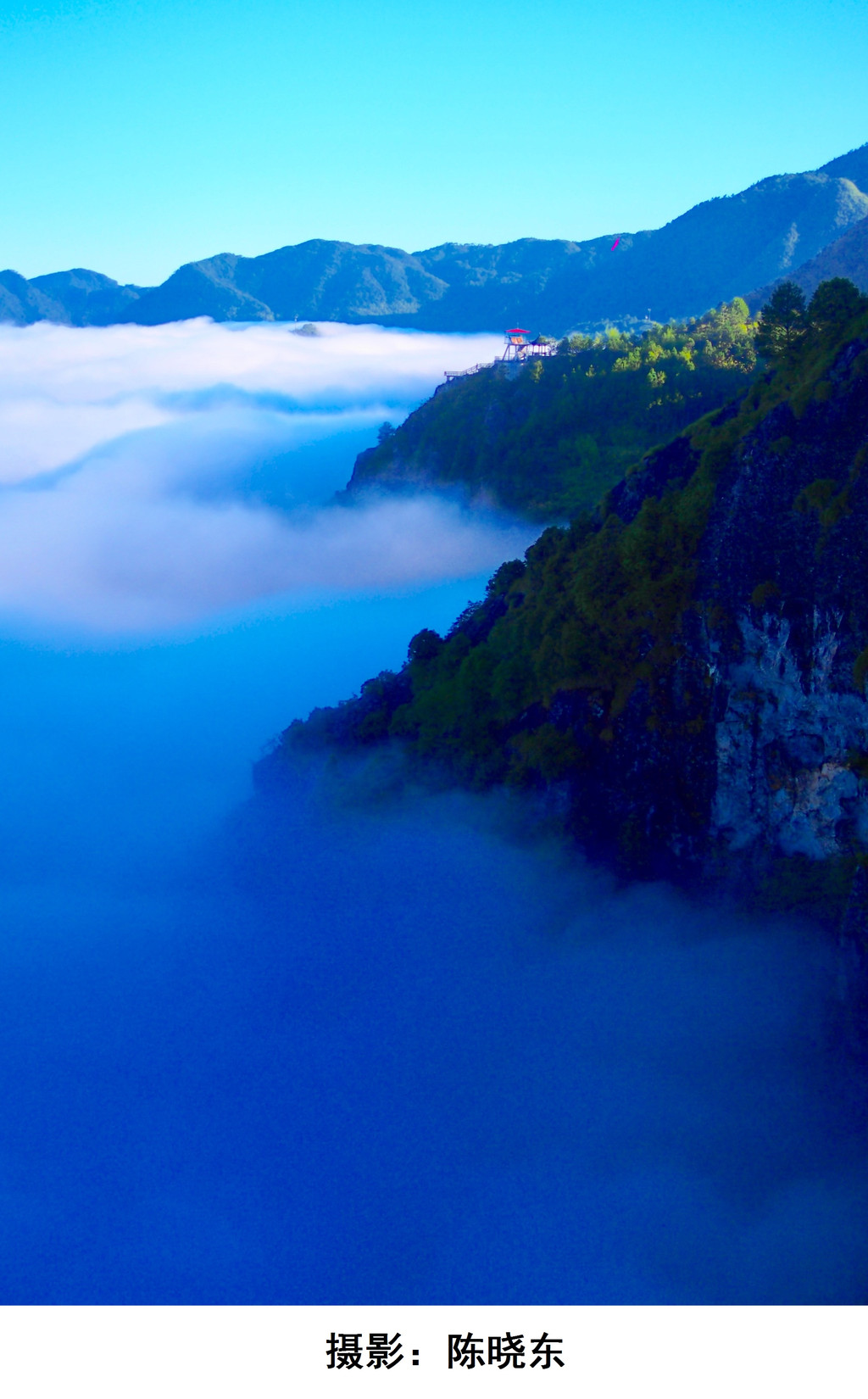 来陈峭,必看日出云海。“登山俯平野,万壑皆白云,身在白云上,不知云绕身”便是陈峭云海的真实写照。而这里的云海有别于他处,它没有那种空旷的单调。它既有云海壮观又极有奔涌气势,还有无数白绸飞舞的曼妙,形态各异,变化多端。