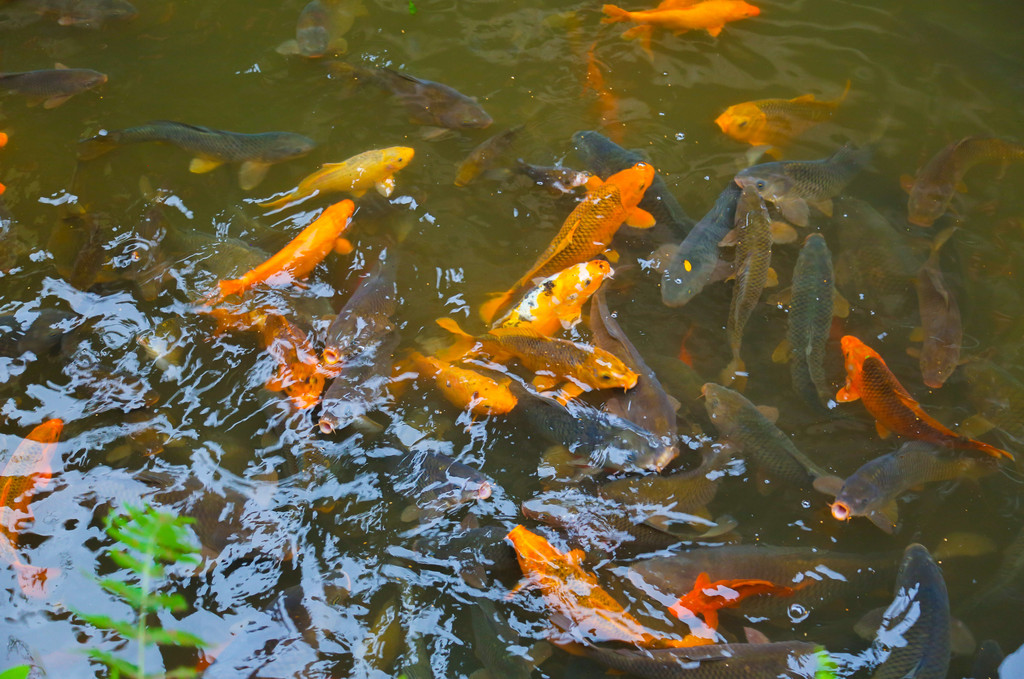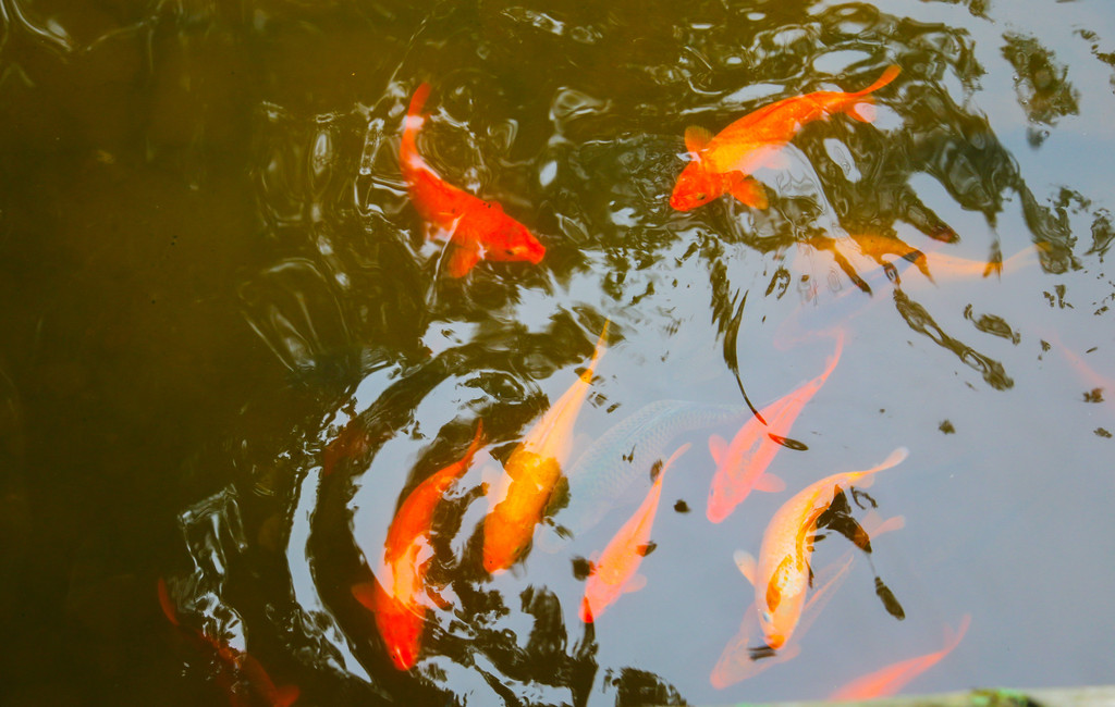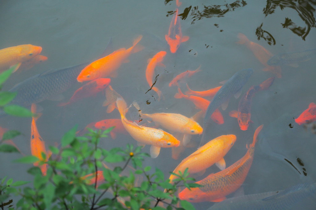 “闻人声而来,见人影而聚”,即使你用手去触摸它一点也不怕人。若是往 水里 撒上一些食物,就会迅速聚拢来一群鲤鱼抢食。