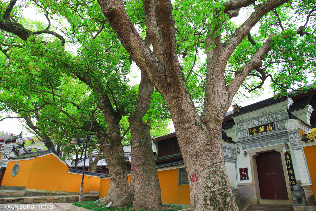普陀山有三棵樟树,树龄相加高于800年树龄