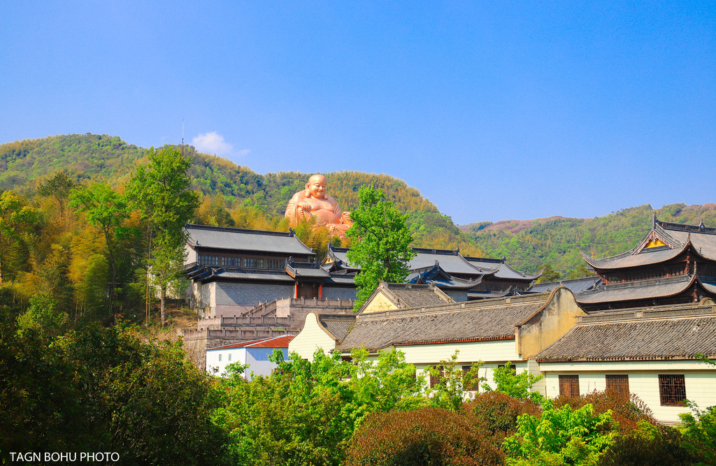 雪窦山是一座具有悠久历史和深厚文化积淀的佛教名山,位于山心的雪窦寺创于晋、兴于唐朝、盛于宋朝,至今已有1700余年历史,在印度佛教中,弥勒是宝相庄严的天冠菩萨相,而在中国的寺院中,弥勒是身携布袋袒胸露腹的笑和尚模样。