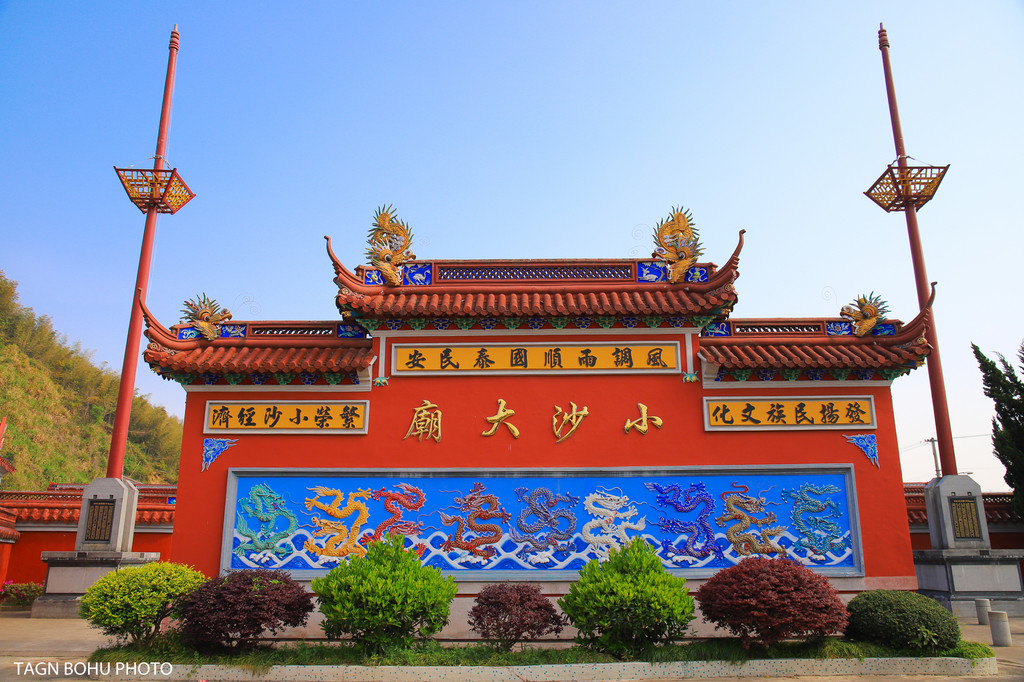 就在小沙公园旁边,小沙大庙很有名气,经过这几年的整修更有气派。小沙大庙原来是缪公祠,“菩萨”是三百年前定海的知县缪燧。缪公是舟山历史名人,清康熙年间在舟山当了二十二年知县,这里也是小沙民族文化艺术中心。在一些当地的节日里会在这里举行一些活动。外面是红色的墙,特别是在蓝天下,红色的墙构成了一幅画一样。