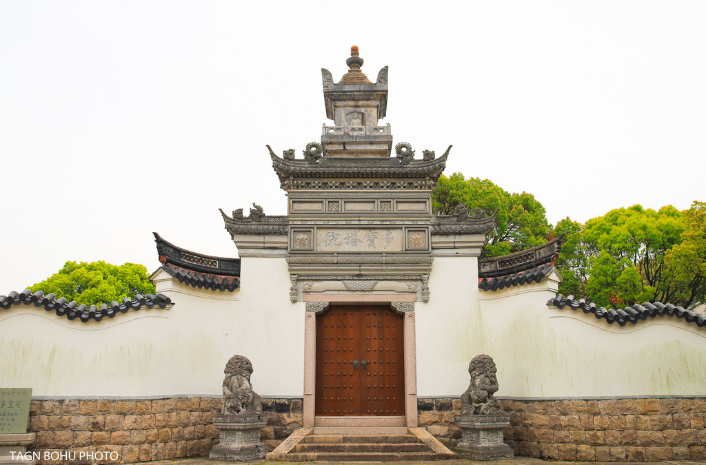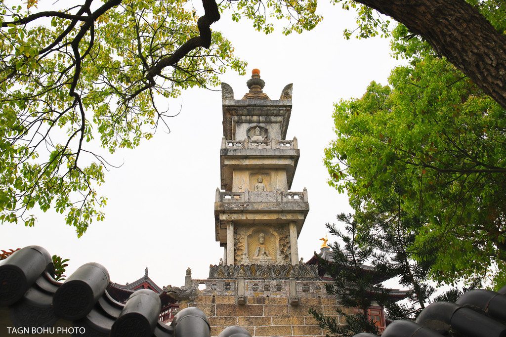 普济寺旁边有一座石塔——多宝塔,是普济寺最古老的建筑,虽然因为院墙隔着,不能近距离观看,但它可是普陀三宝之一。