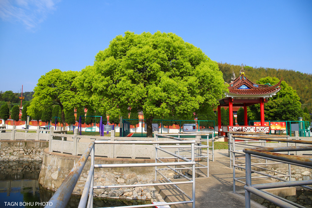 就在普济寺的左侧,有三棵巨大的樟树,其中有一棵树龄有300多年了,其余两棵都超过250多年的树龄。古老的樟树,游客到这里观看都会被这几树古树给吸引住,茂密的树枝,郁郁葱葱的树叶。普济寺也是最值得打卡的一座古老寺庙。寺庙前几个池塘也是拍照的好地方。有亭子,水池,树木,这里宁静。