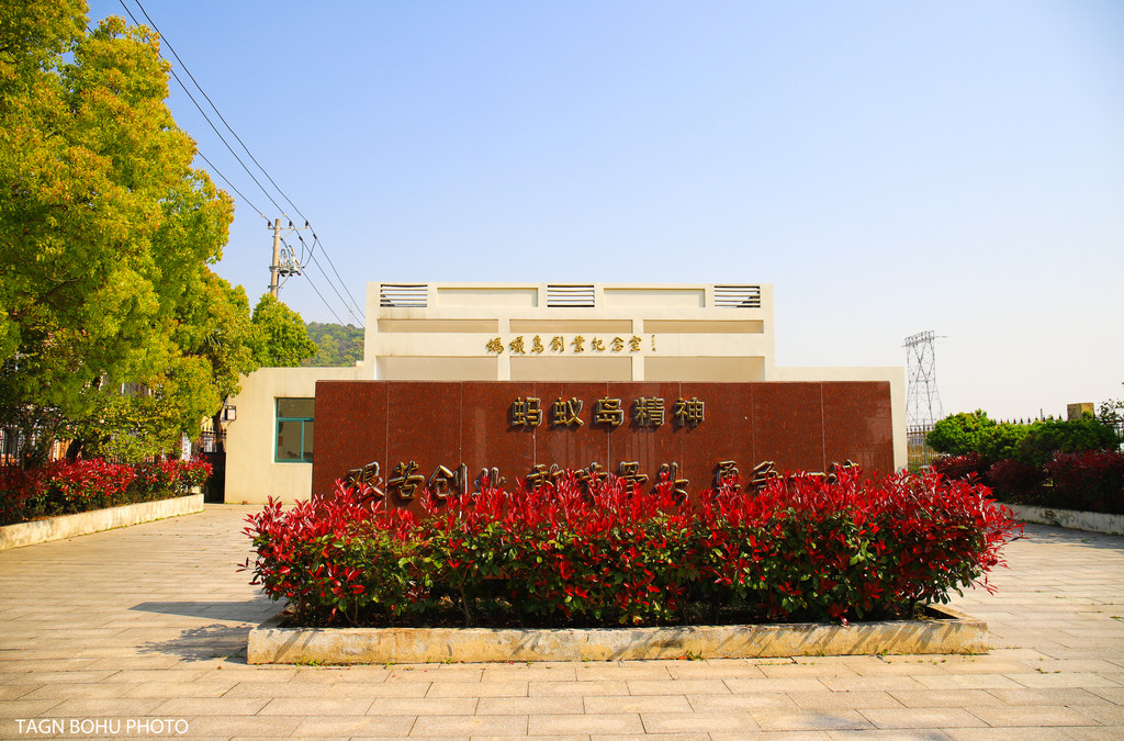 岛上还有一个景点集中反映了当年蚂蚁岛艰苦创业的精神,这个景点本来我也不知道的,是我坐的那个大爷带我去的,说是去那边看看有好多照片,我便跟着他一起来到了这个纪念馆里。当我走到纪念馆前看到上面写着蚂蚁岛精神,为深切纪念和缅怀这段辉煌历史,更好地继承和弘扬前辈的创业精神,上世纪90年代建立了蚂蚁岛创业纪念室,后面又重新修建了纪念馆。
