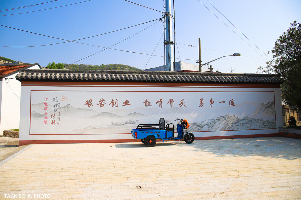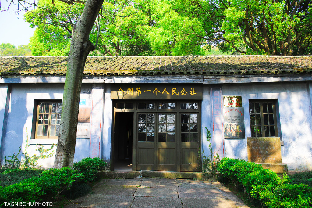 就在码头门口有好多当地老人家骑着电动三轮车正在等着游客坐,我找了一辆年纪比较大的大爷讲好价钱后就坐上电动车前往这个岛最为重要的景点,也是唯一一个值得打卡的景点了,那就是全国第一个人民公社的诞生地。三轮车沿着海边的马路走去,再经过小巷子,没到五分钟就到了这里。