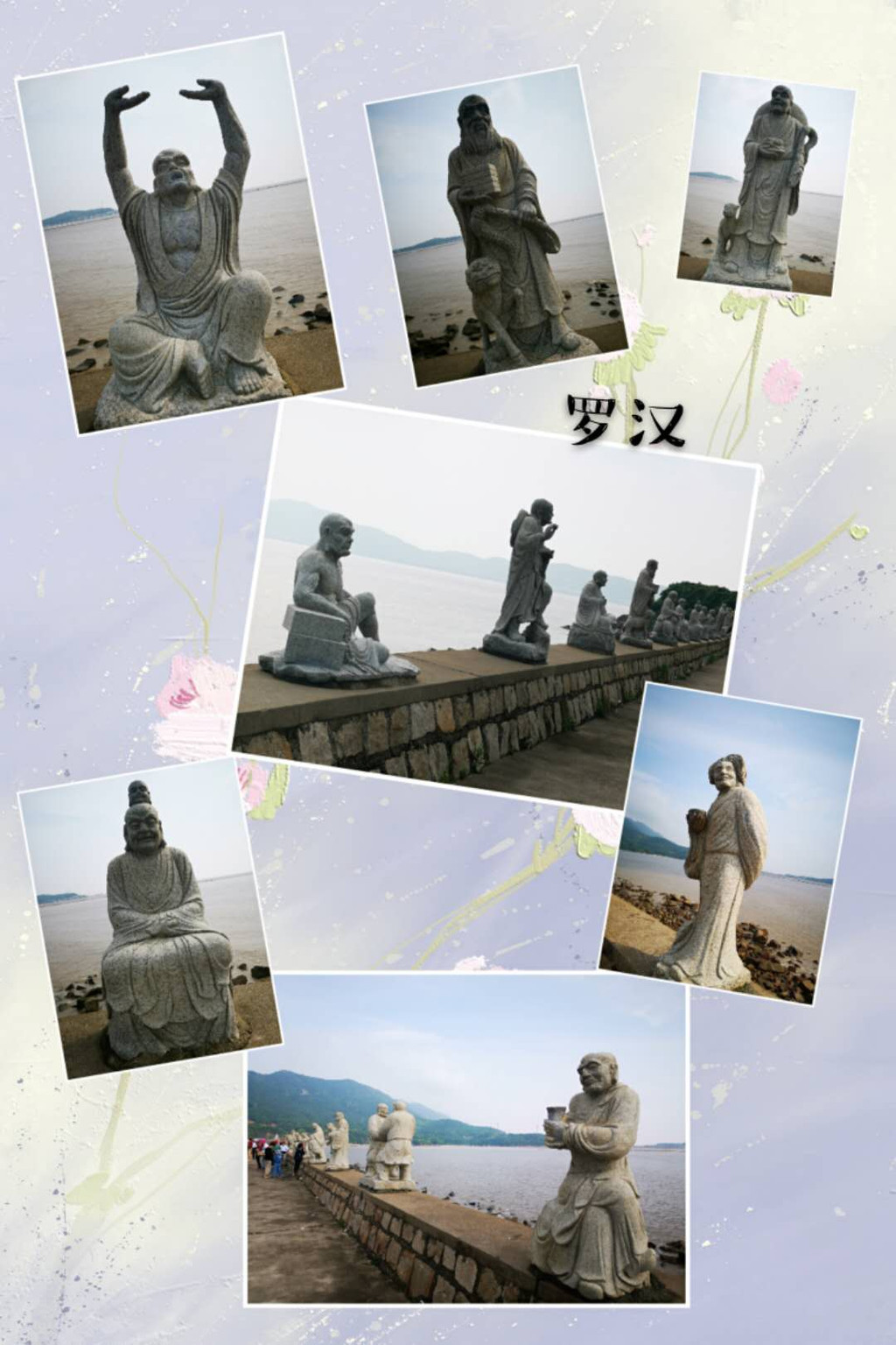 来到景区,首先映入眼帘的是133座花岗石罗汉雕像,他们矗立在连接小岛的海堤北侧,一直延伸到岛上,姿势各异,静立海岸,默听风声、潮声。