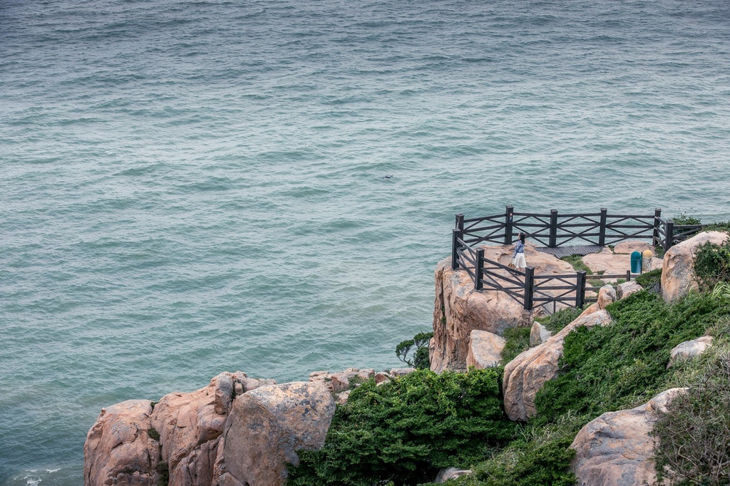 没错,“山海奇观”位于枸杞岛南端,是岛上的最高处,站在山海奇观的观景台,可以俯瞰整个枸杞岛的一半,能看到远处的渔船、房屋和劳作的渔民,这里也是观看日落的好地方。