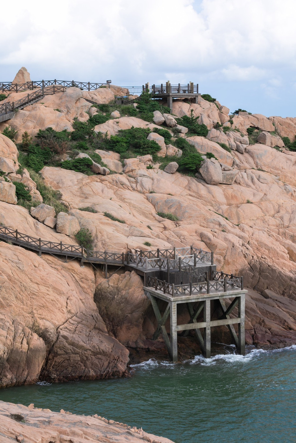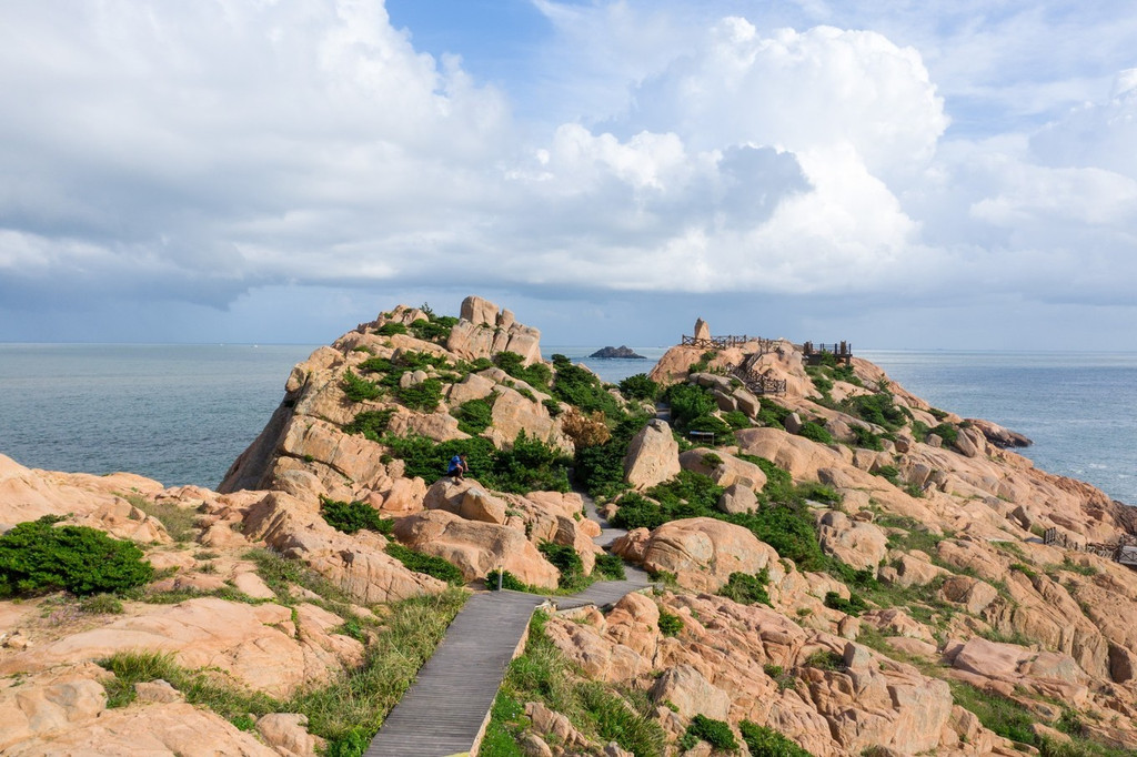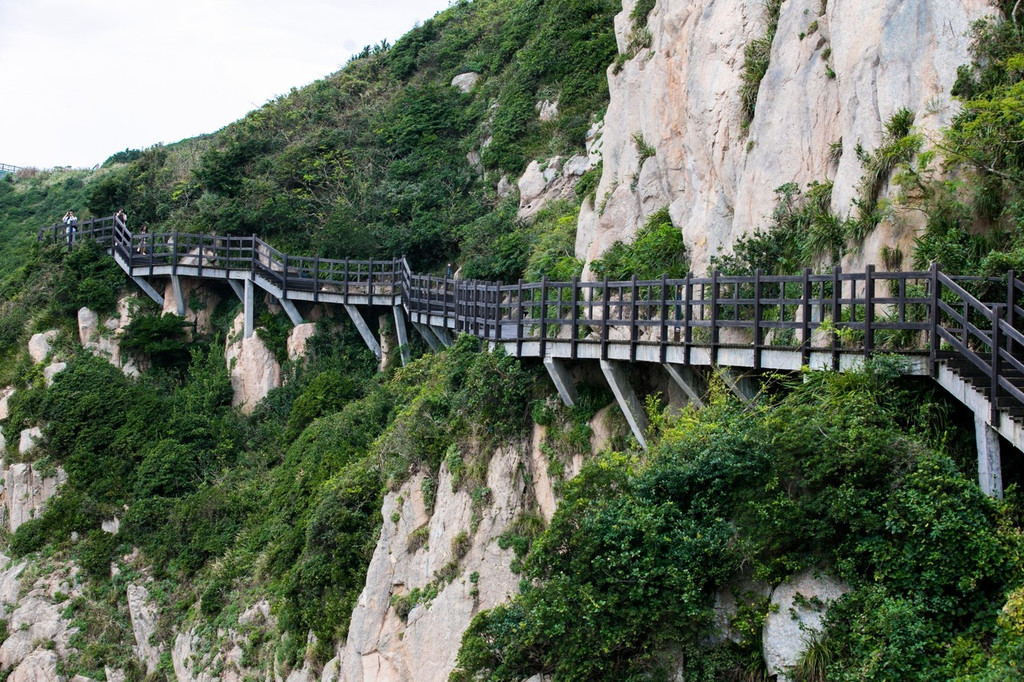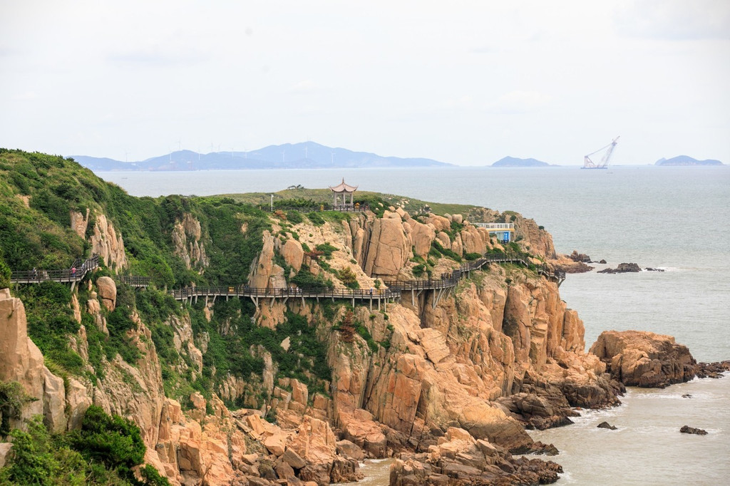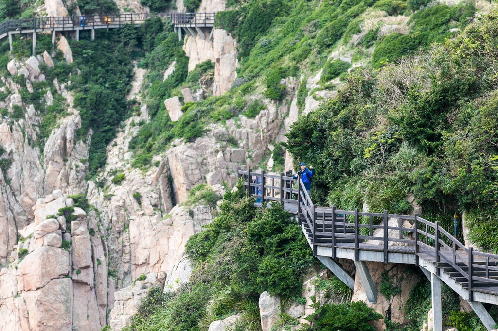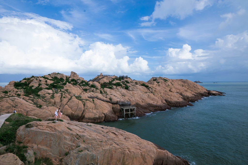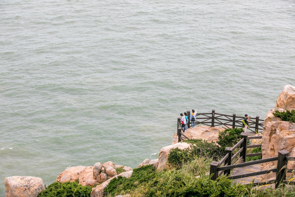 崖顶是观日出、揽海景、望渔舟晚归的最佳点,凌空绝壁,层层叠叠,奇观异石,形态各异,运气好的时候还可以泛舟海面看渔夫打鱼、渔嫂拾贝的丰收景象。