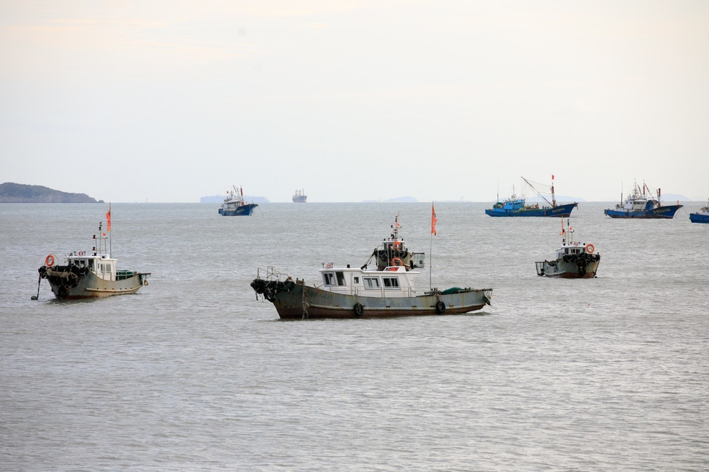 当天来往的船只不多,偶有两三搜渔船,小轮船缓缓划过海面。