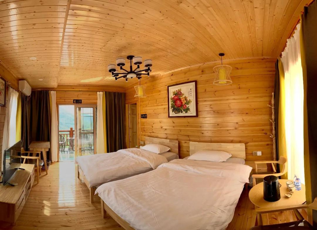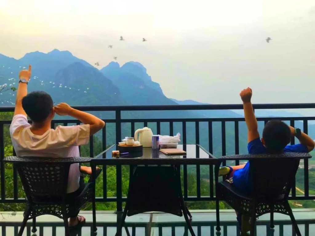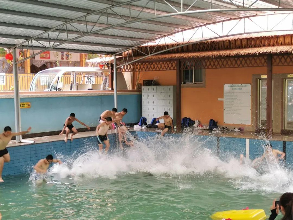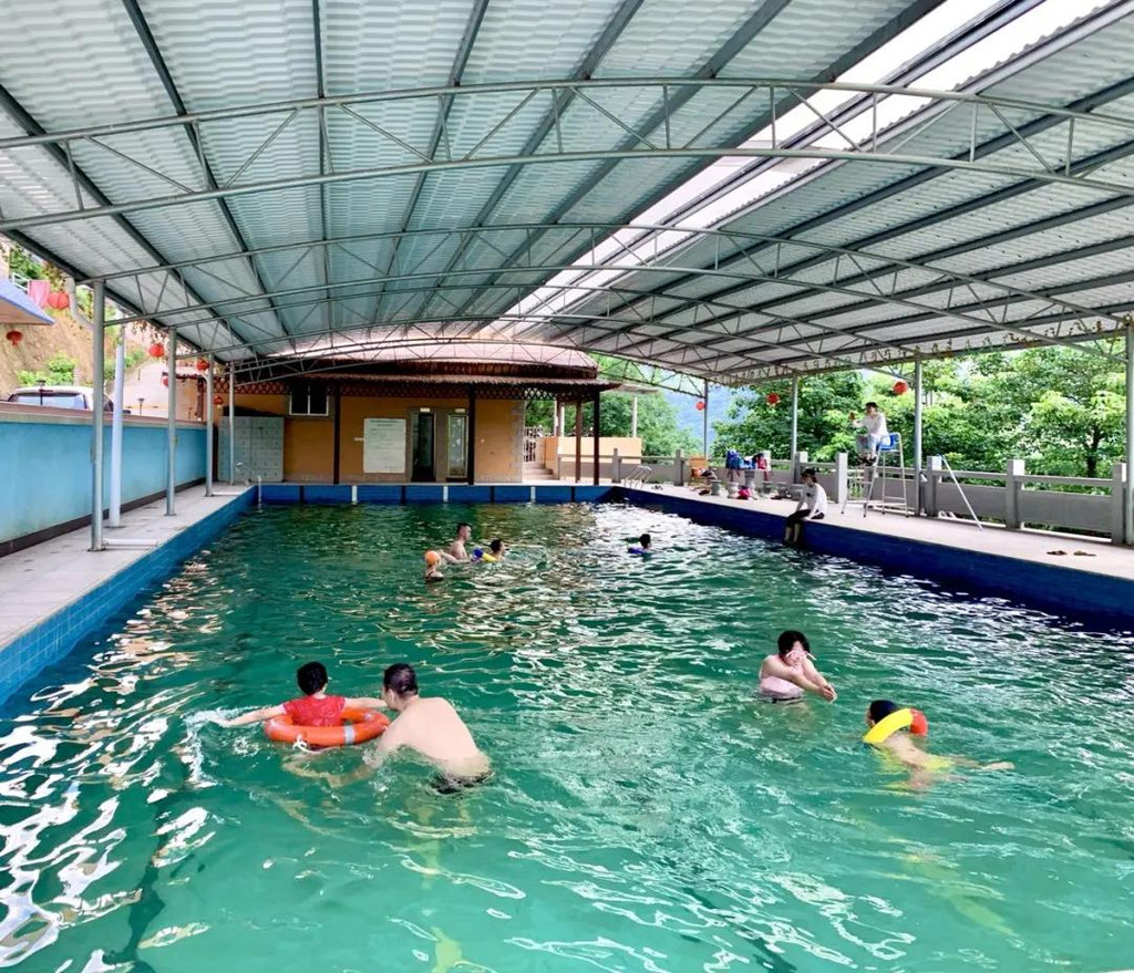 两人一组,坐上橡皮艇在水流的冲击下沿着滑道滑下山谷