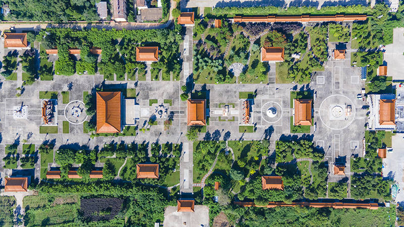终南山古楼观是西安楼观中国道文化展示区的核心引擎,宏伟的古建群落依山而建,充分结合地形南高北低特点,坐南朝北依序展开;以太清门、上清门、玉清门三段划分轴线,形成道教“三清圣境”以中轴大殿为节点形成九进院落空间,充分彰显了“道源仙都”的大气与磅礴,被誉为陕西的小故宫。