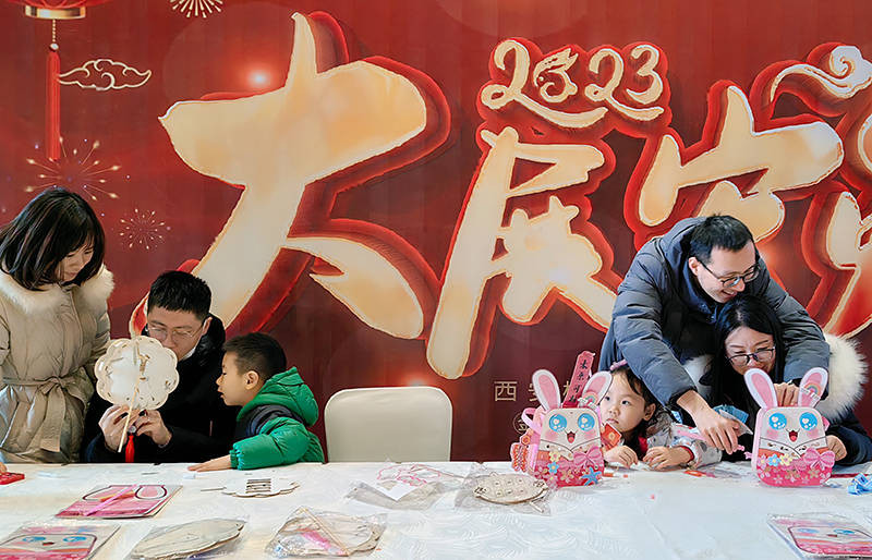 新春期间,楼观印象酒店推出了舞狮表演、财神送福,非遗手工剪纸和兔兔DIY灯笼,蒸花馍、包饺子等新年系列活动,浓浓的年味儿顺着指尖绕着团圆飘出欢喜。