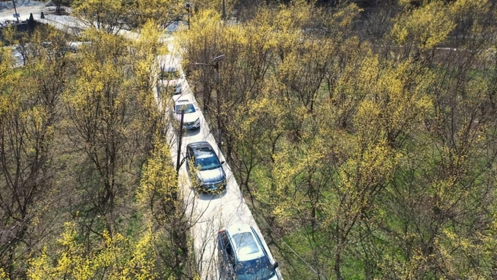这片壮观的山茱萸花海不仅成为了游客们争相观赏的景点,还为当地的乡村旅游发展注入了新的活力。车队的到来,更是为这片金色花海增添了几分热闹与欢乐。