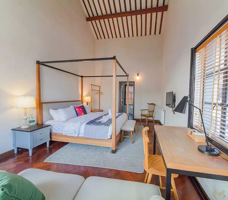90年代是私密的小院,简约大方,楼栋沿河,有东、西两个庭院,西庭院内含竹林一片,安静、清幽、环境优美,楼栋内含独立客厅及厨房,厨房用具一应俱全,来到这里度假最适合不过了!这楼栋有东西两个庭院,最多可同时接待11人入住,二楼西边有一个专为儿童设计的阁楼房,深受小朋友喜爱。西侧是个竹林小庭院,春日挖竹笋、夏夜听蝉鸣、秋天乘风凉、冬日晒暖阳,体验乡村人家生活。