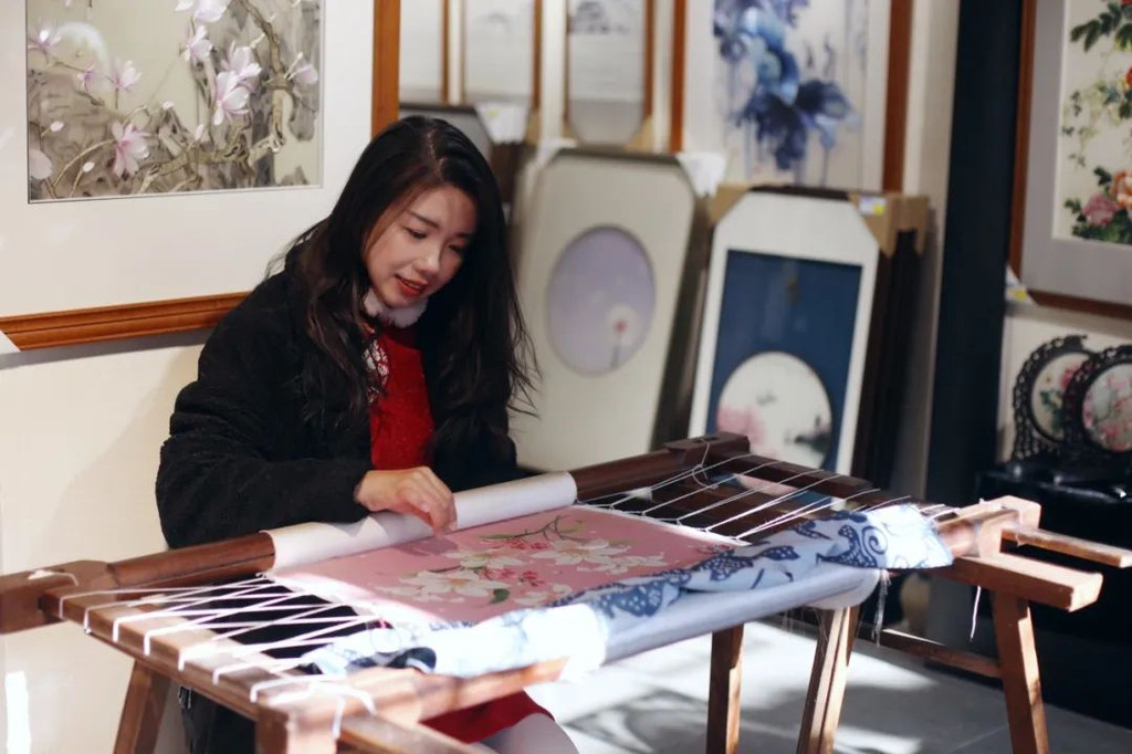 绷布、绷架、苏针、花线,穿针走线后,一幅幅形象生动的绣品就诞生了。一针一线里,都是时光啊。