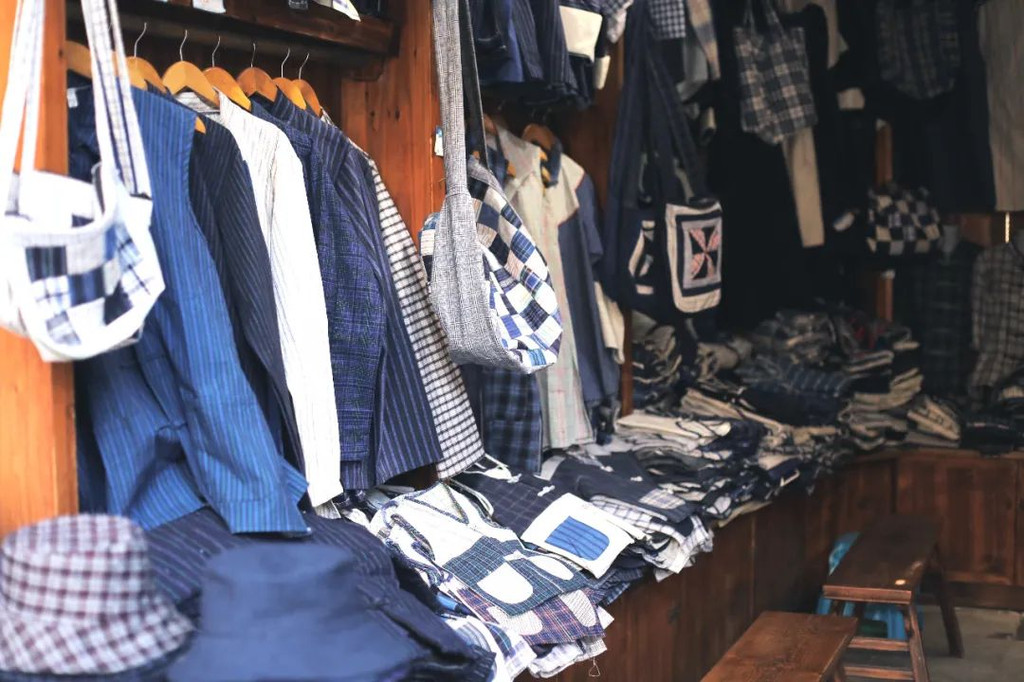 还发现一个土布坊,极具江南韵味。一件件土布纯棉旗袍、马褂、裤子,还有各种包包。