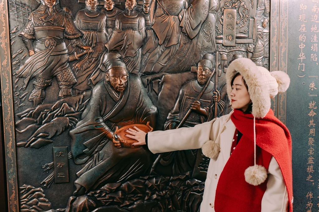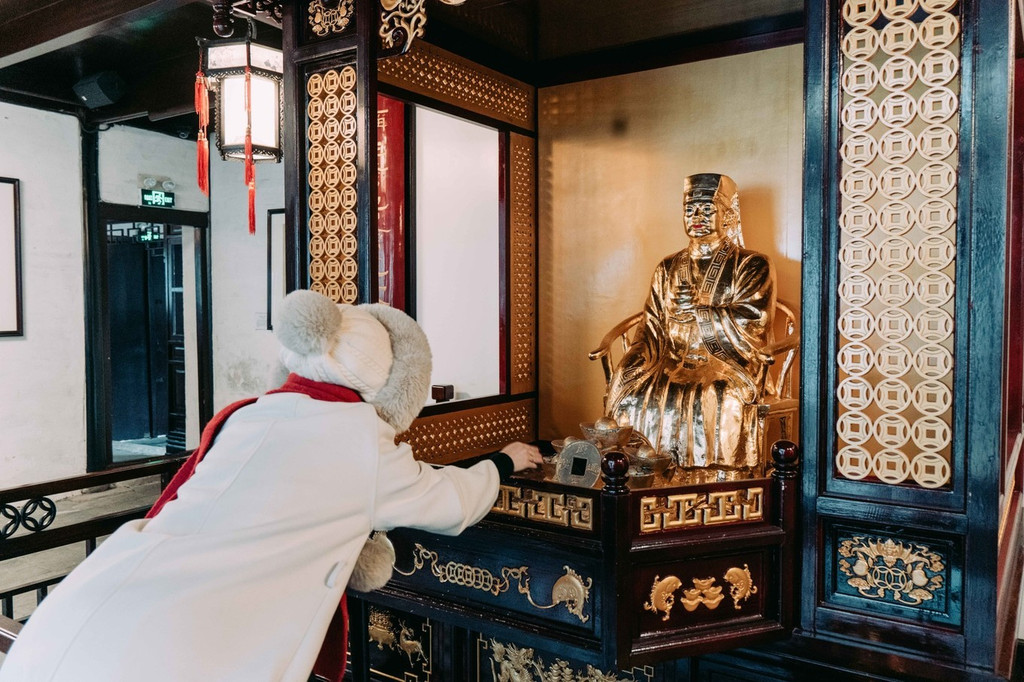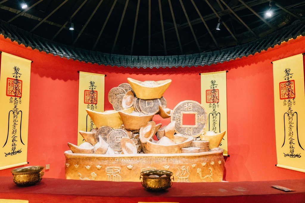 沈厅的财道里刻画了沈万三的一生,我们可以在此聆听这位江南首富的传奇故事,还可以拜财神、摸聚宝盆、投铜币、挂许愿牌......听说在沈厅里扔铜币进钱眼,祈祷新年财运很灵验哟~