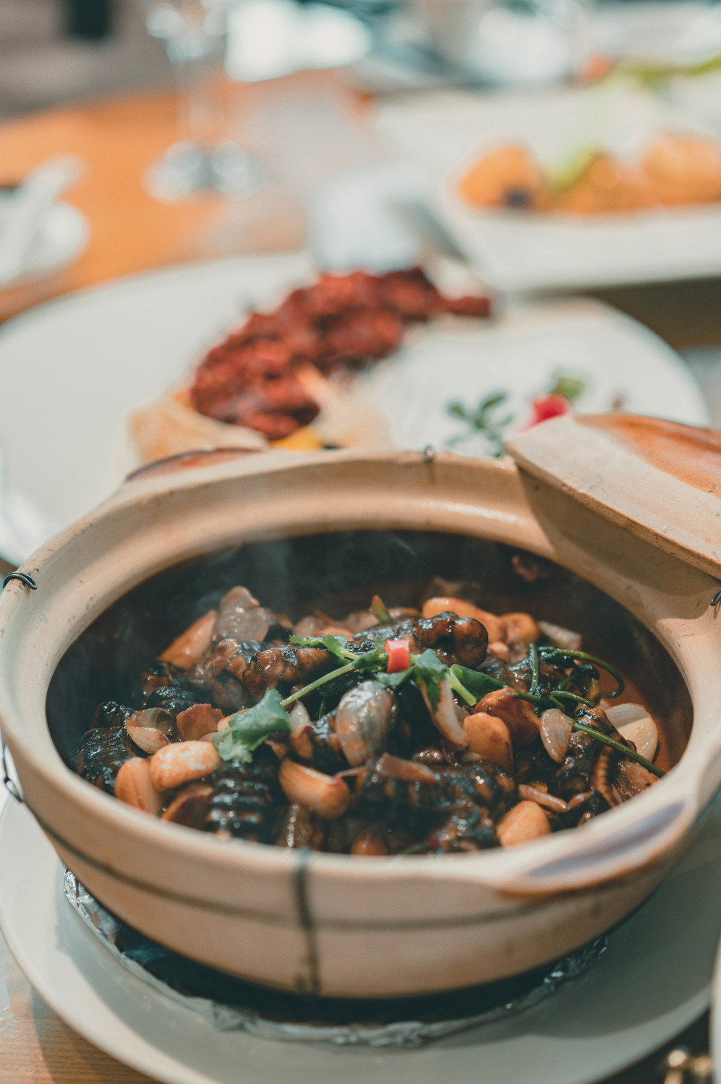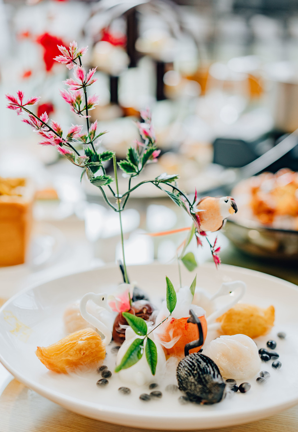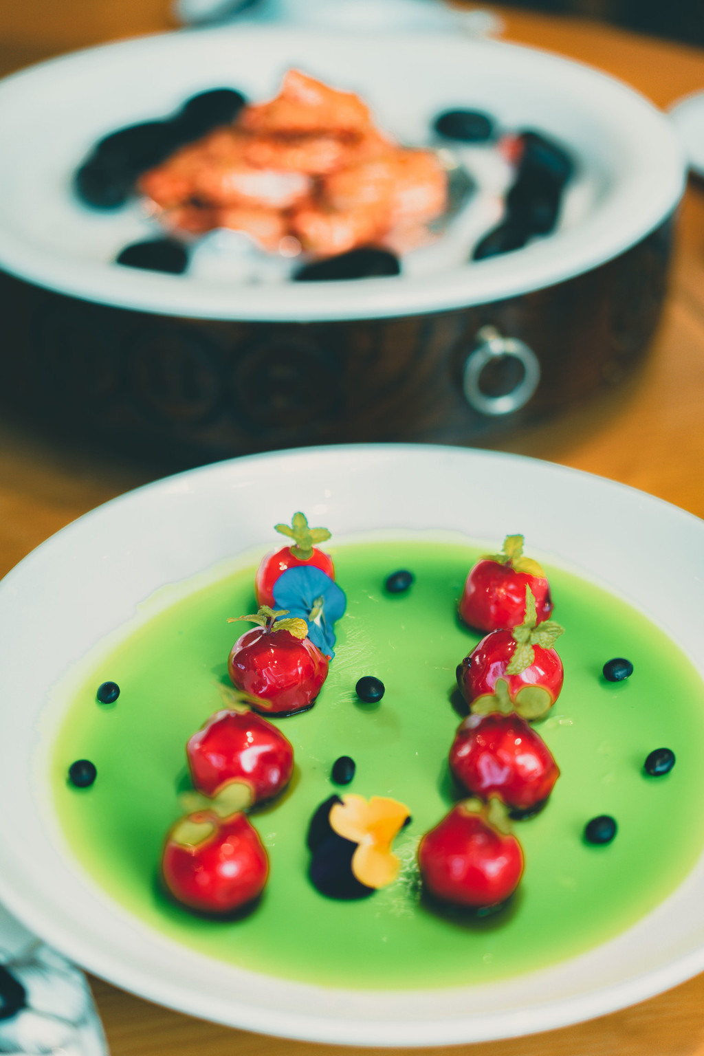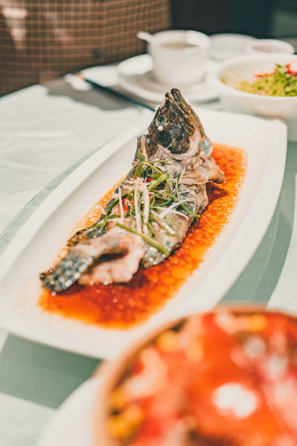冲浪鲈鱼(汤贼棒)、火焰盐插虾、樱桃山药、焗焗鳝筒煲、鲍汁脆皮玻璃乳鸽、天鹅酥拼小白兔、养生自制黑豆腐......