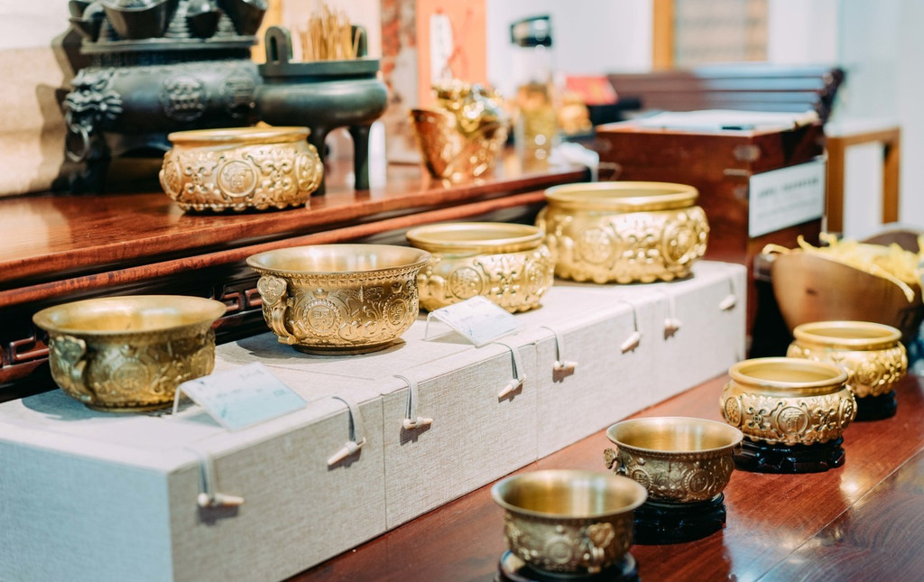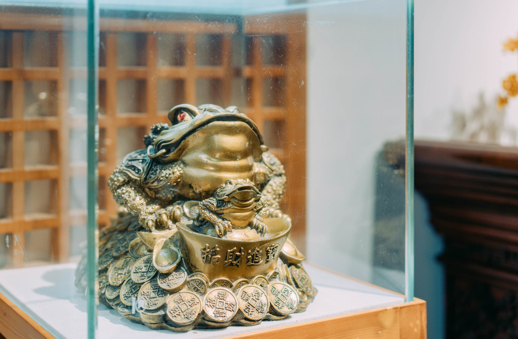 往里走,这里也有很多值得一买的文创产品:金蟾蜍、金元宝、金算盘、聚宝盆等。