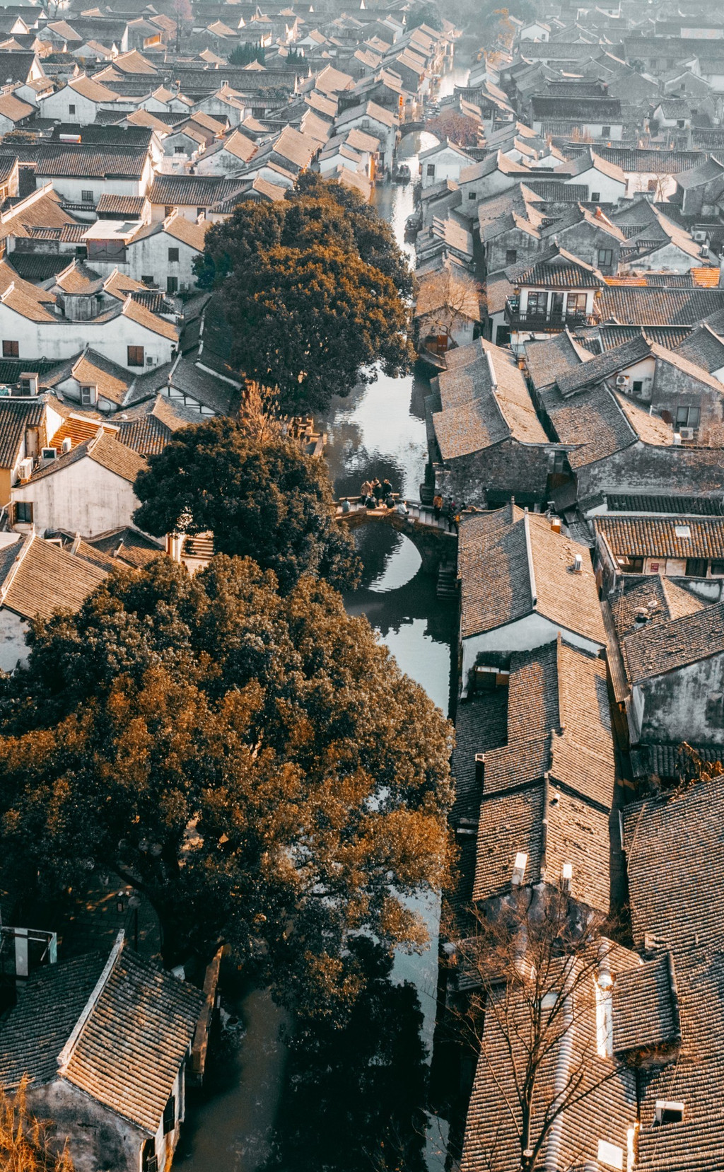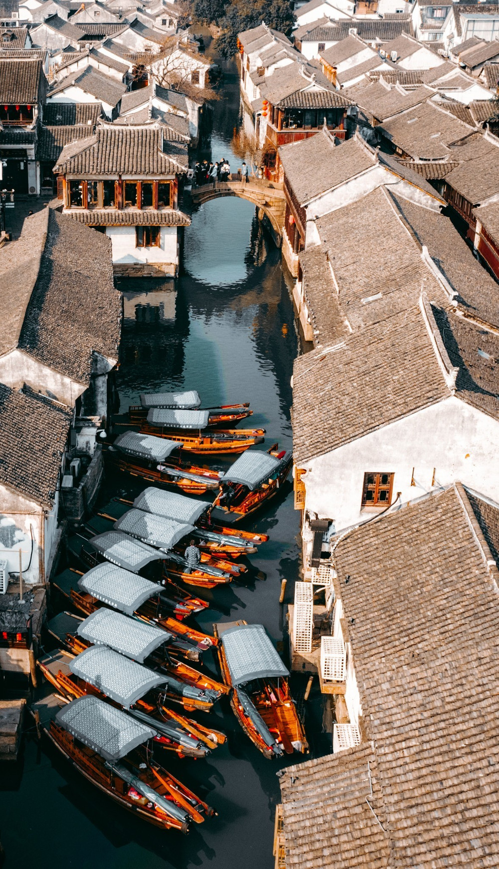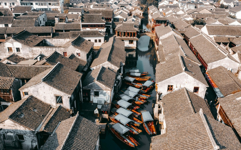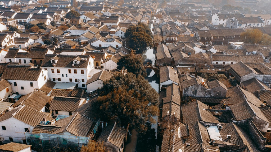 灰瓦白墙,河道纵横,跟随无人机的视角,我看到了这个江南水乡常常萦绕在我梦中的,令人百看不厌的意境: