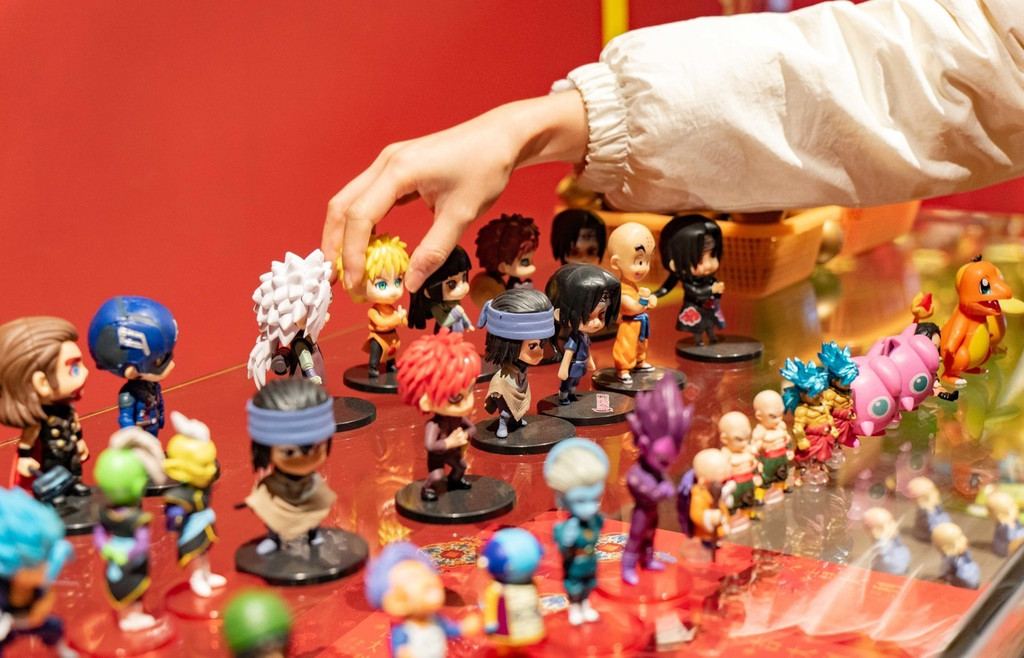 从摇钱树上摇下财盒小球,打开看到奖券上是什么就去领什么奖品,有的是小弥勒佛,有的是精品手办……增添了许多新年的欢乐!