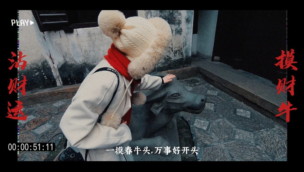 一般每年是在古牌楼摸金牛,这次我们在沈厅里找到了这头石牛,权当这是首富家的财牛吧!记住,从头摸到肚、再到尾哟!