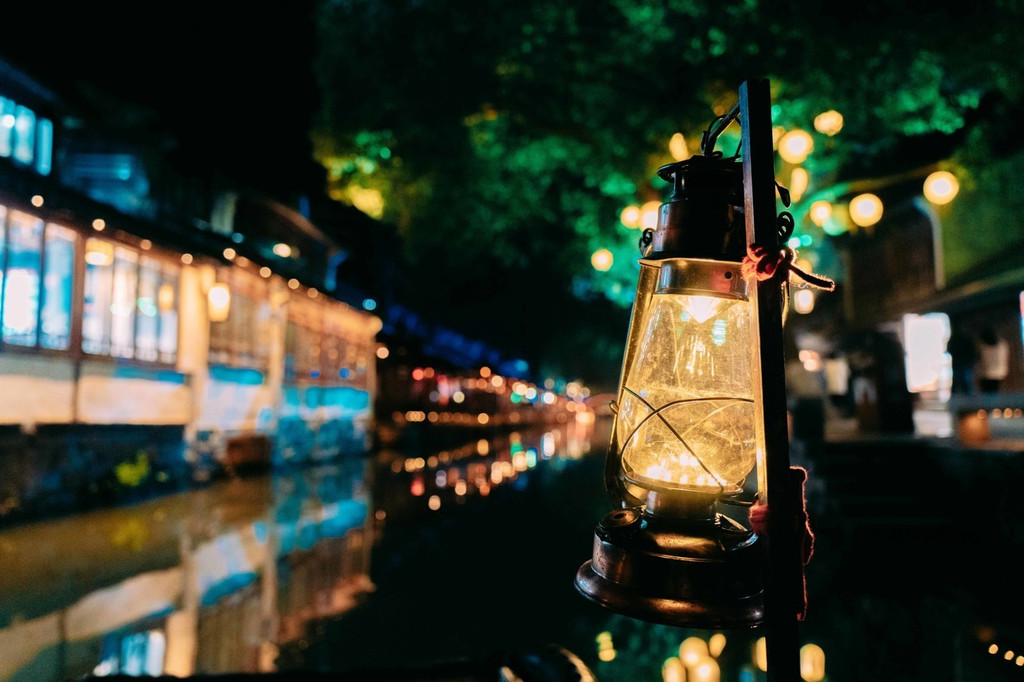 画船摇曳,马灯闪烁。就这样坐在船头,缓缓行驶在周庄的河道上,听船桨搅动着水流的声音,听岸边偶尔传来老奶奶的评弹声……这样的夜周庄怎么能错过呢?