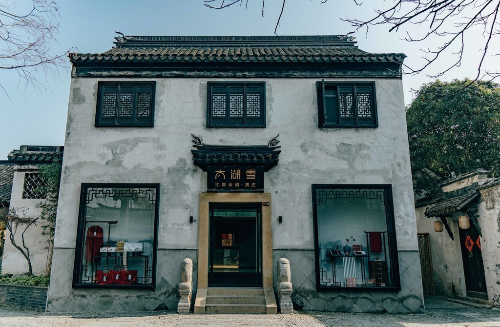 除了贞丰十二坊,文化街上还有几家特别出名的特色商品店,太湖雪丝绸就是其中的代表。