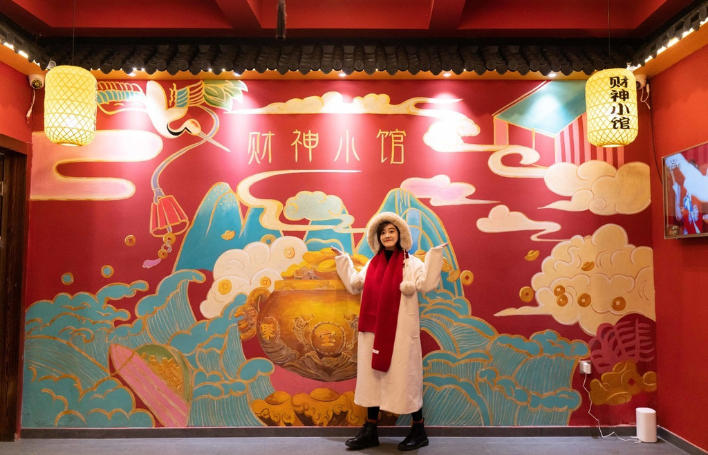 财神小馆像一个主题游乐园,有很多体验活动:如意金算盘、摇钱树、结财缘、开财盒……玩法多多,财运满满。