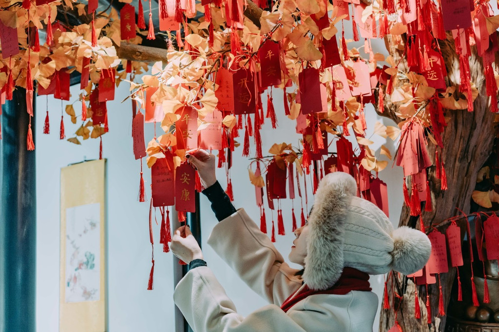 我在这里挂下许愿牌,祈祷疫情早点儿过去,新年风调雨顺、人民都很安康。