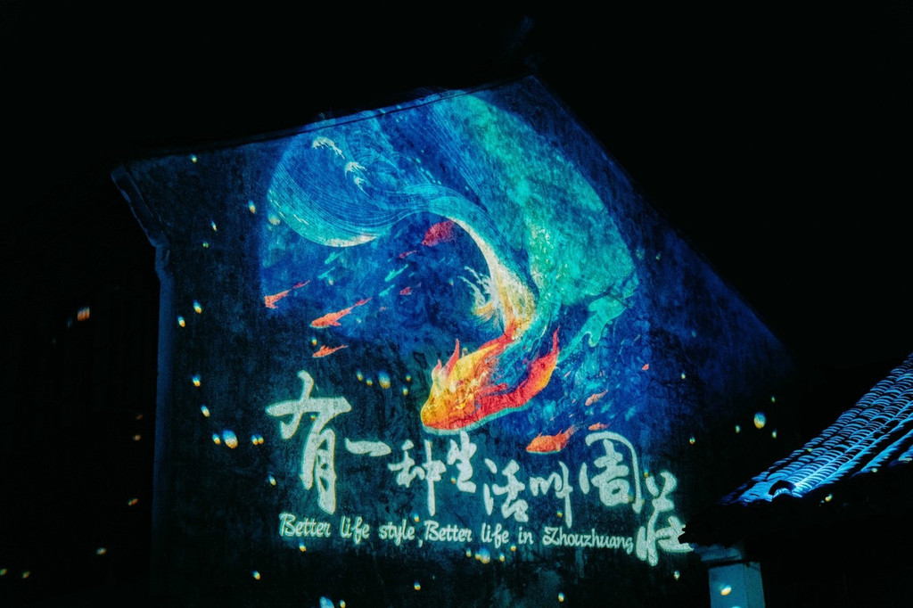 从2017年起,周庄就着重发展夜游,利用光影科技、艺术设计点亮了周庄的湖湾、水巷、小桥、老街、古宅、名刹,南北市河及沿河街道文创灯光将其串联成珠,形成“夜渔”、“夜戏”、“夜画”、“夜囍”、“夜宴”、“夜禅”、“夜月”、“夜泊”八大特色夜游主题。