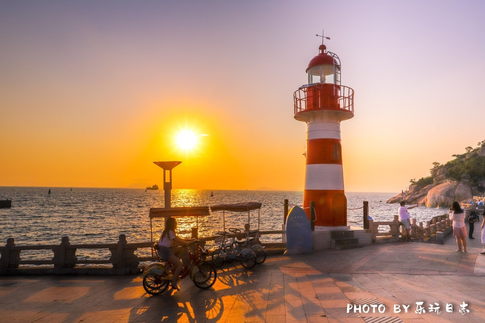整个小岛海岸线长达12公里,环岛栈道均设在海边礁石上,一侧是山峰,一侧是海水,每当日落时,情侣路上都会聚会集大量的游客来此看夕阳。