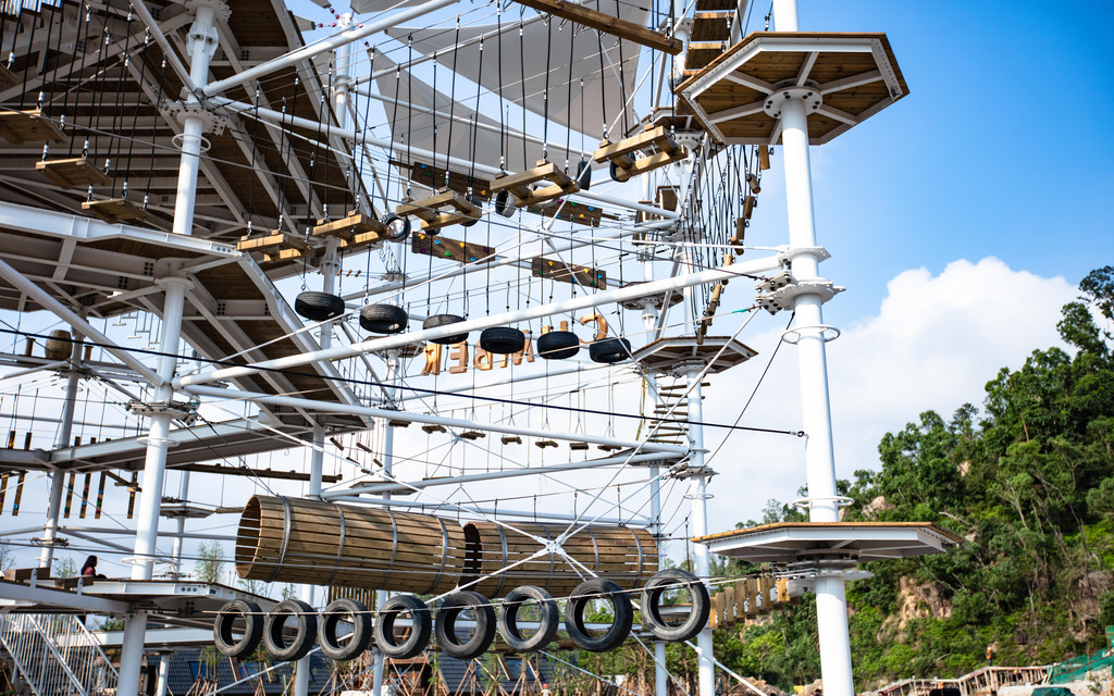 第二个去的就是推介必玩top2——水晶之塔,看上去像一个塔,里面布满了蜘蛛丝。身穿威亚像蜘蛛侠一样攀岩。这里会有专业人士提供威亚穿上,安全是可以放心的。里面的关卡一层更比一层难。而且这个项目还可以和其他人一起battle哦!而且,安全已见,1.2m以下的儿童会有专业的教练的带领哦!不过需要支付50元就可以畅玩40分钟!