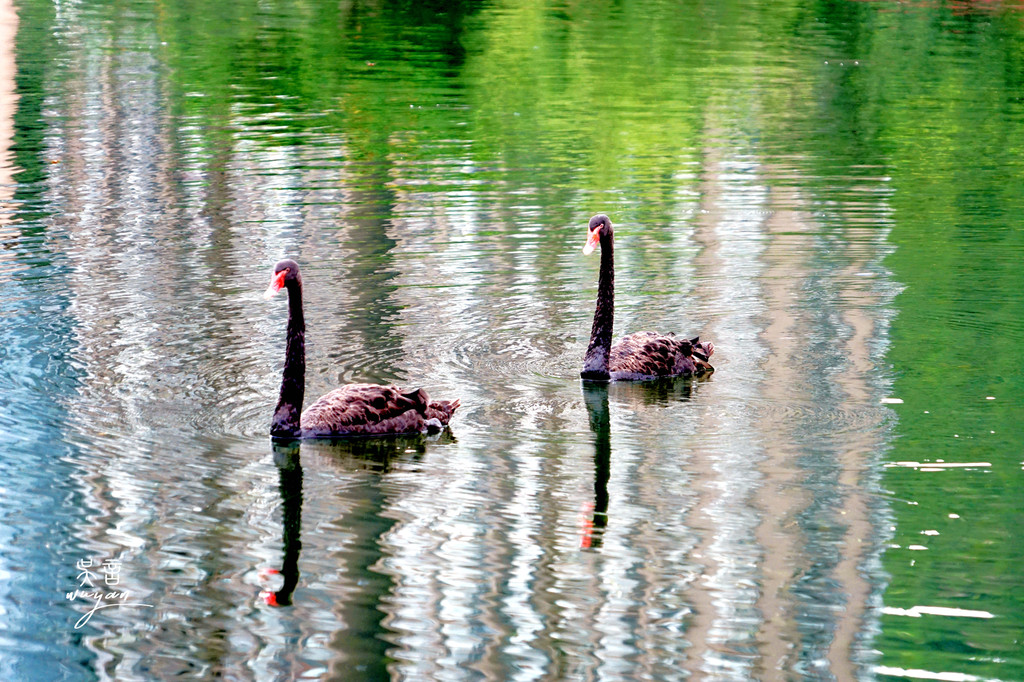 而九洲湖里的黑天鹅,有的成双成对,大比爱心;有的独自闲游,自得其乐,更为美丽的度假村增添了几分生机和乐趣。