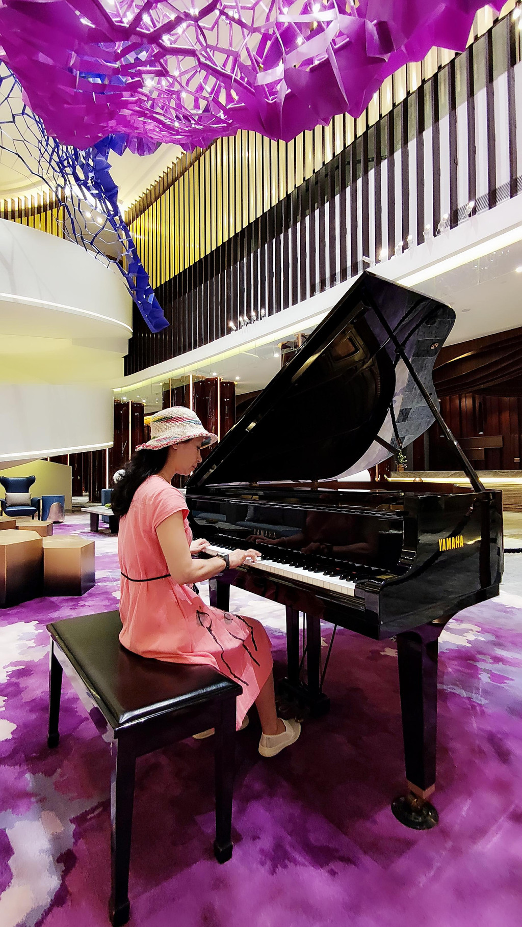 悠扬的钢琴曲飘扬在大堂上空,飞出大楼,飞向大海,我如入无人之境。