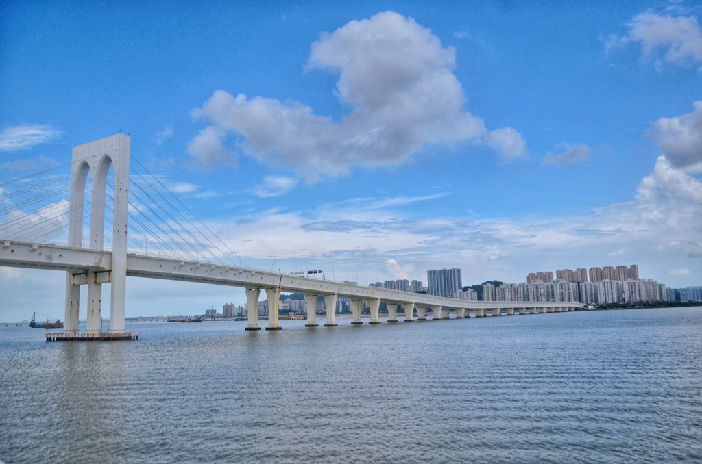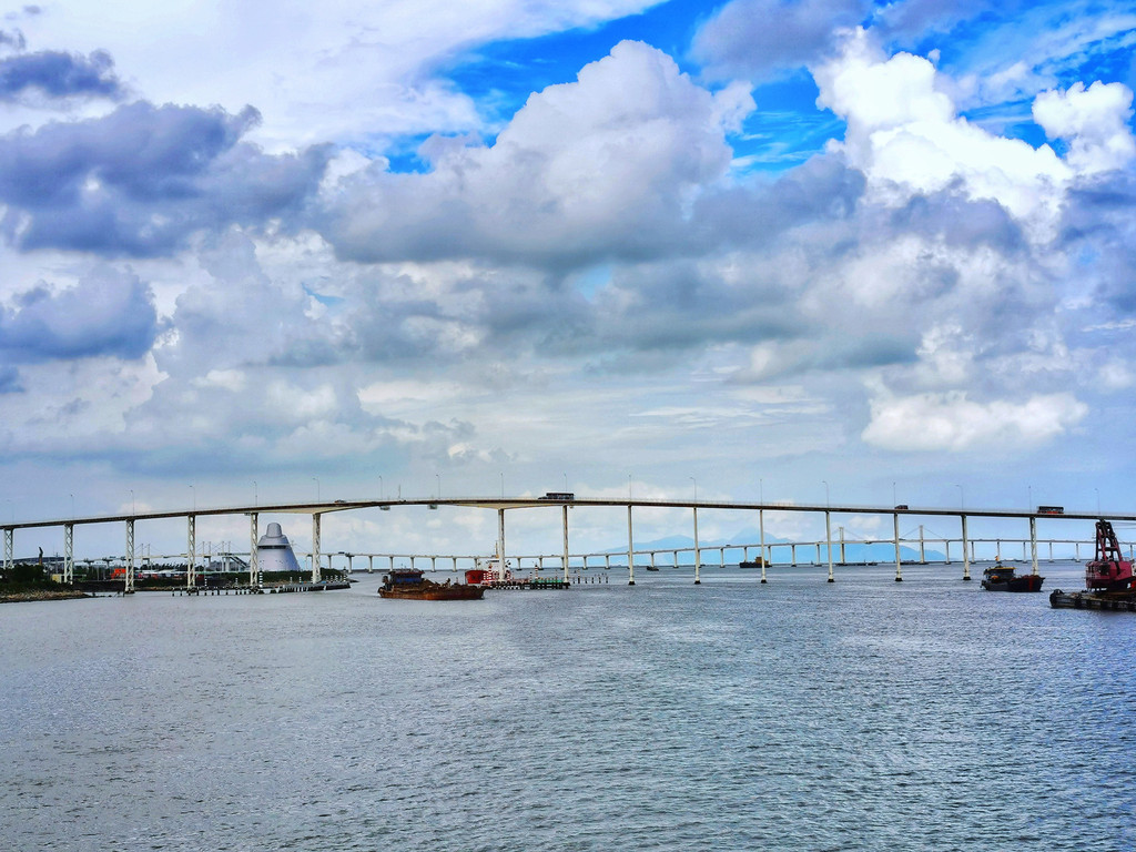 来珠海之前,看过天气预报说最近有雨,没想到来了之后白天的天气非常晴朗,在晴空万里的环境下,无论从哪个角度拍照,都能拍出精美绝伦的大片。而港珠澳大桥也因此更加雄伟壮观。
