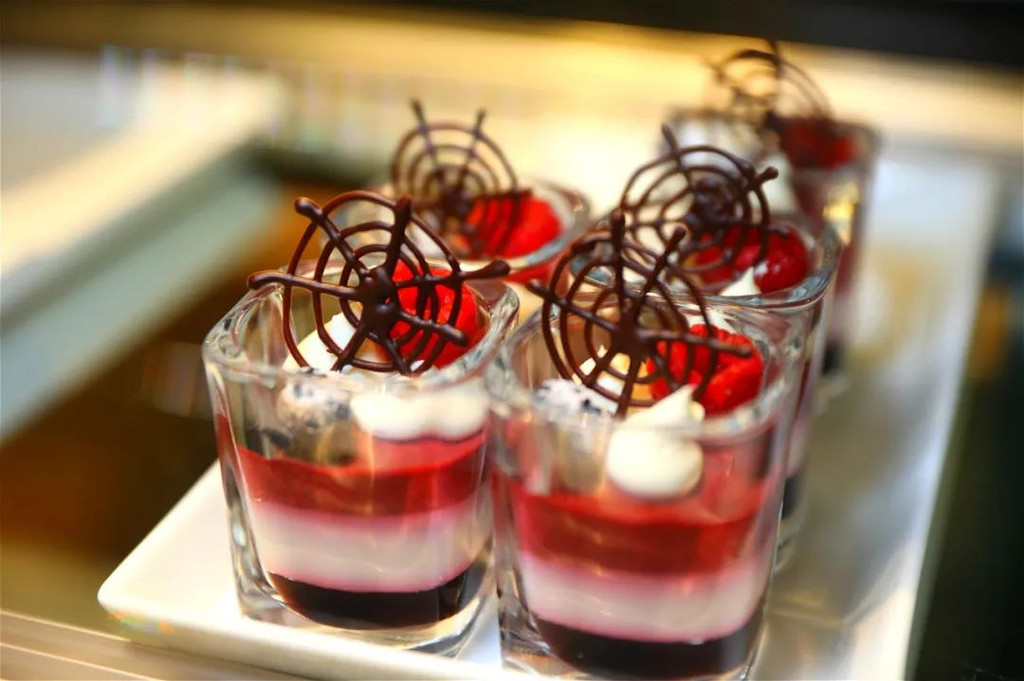 小蛋糕可以分为有酒精和无酒精几款,每一款小点心都是蛋糕蛋糕里的艺术品。看看两姐妹吃得多专心。