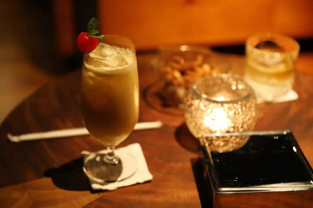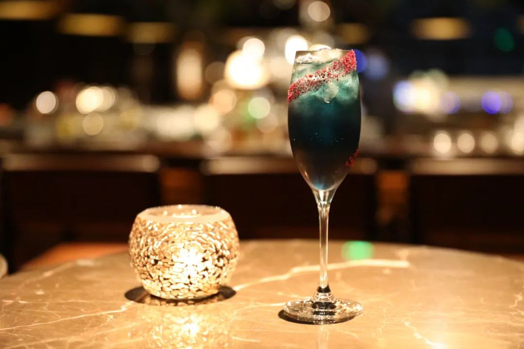 在吧台,可以让调酒师调一杯鸡尾酒,我对鸡尾酒的了解并不多,只能听调酒师的推荐了,他给我推荐了一款星夜: