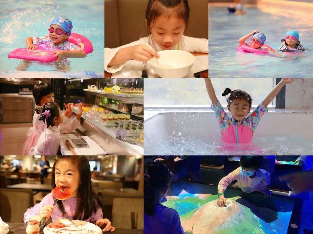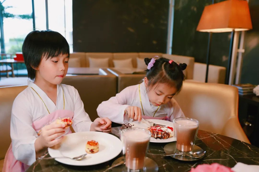 来酒店第一时间居然是泡澡,整个房间里都洋溢着两姐妹的欢声笑语。换上了酒店美人鱼同款的美美汉服,米米说,这个房间很好玩哦。好感度满满!【吃在凯悦】横琴凯悦酒店设有6间特色餐厅和酒吧,辣么好玩的酒店,好吃的当然少不。【大堂酒廊下午茶】每天下午,在大堂走廊里都有供应特色下午茶,1-5是定食套餐,周六日会推出自助下午茶套餐。两姐妹迫不及待就在选择自己喜欢的蛋糕了。