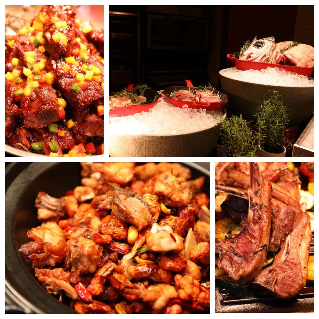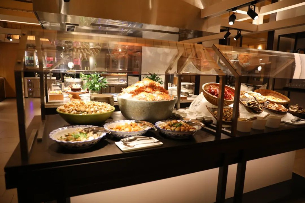 环境很好,坐得非常宽敞。在这里充分体现珠海毗邻港澳地域优势,海鲜都特别新鲜,海螺,花蟹,鲜虾,长脚蟹应有尽有。西餐里面的各种扒类,都是做得特别的精致和专业,当然除此以外,在咖啡厅的自助餐里,还隐藏着一些特别有特色的菜式。新鲜的波士顿龙虾,用铁板煎香,龙虾鲜香味很浓郁,而且厨师高超的技术煎得刚刚好,虾肉不会老,还有弹性。大大条的龙趸,切片用高汤浸熟,鱼片浸到刚刚好,鲜甜味美。妹妹好喜欢这鲜甜的鱼汤,大口大口的喝,喝到后面脸都不见了,完完全全埋在碗里了。【享悦中餐厅】享悦中餐厅位于酒店二层,集中展现广东饮食文化特色,不仅覆盖了独具特色的粤菜精华,营造别具一格的用餐环境,还将突出怀旧风格的 “大排档”氛围, 呈现一派热闹熙攘的景致。大家可一边精选海鲜池内的鲜活食材,一边欣赏大厨在开放式厨房中展现的精湛厨艺。