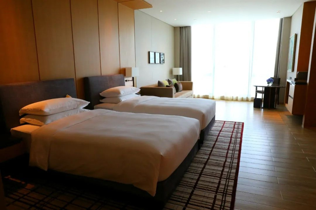 酒店是位于珠海横琴新区创新方七色彩虹路的凯悦酒店。酒店很新,是今年年初开放的。特别适合我们这种亲子游的家庭。走进房门,拉开窗帘,我们的假期拉开帷幕了。我们住的是在22楼嘉宾轩豪华双床房,房间很大很宽阔,我超级喜欢这种饱满干净的床褥,暖黄的房间,还有暖心的空气净化机,走进来就感觉很舒服。