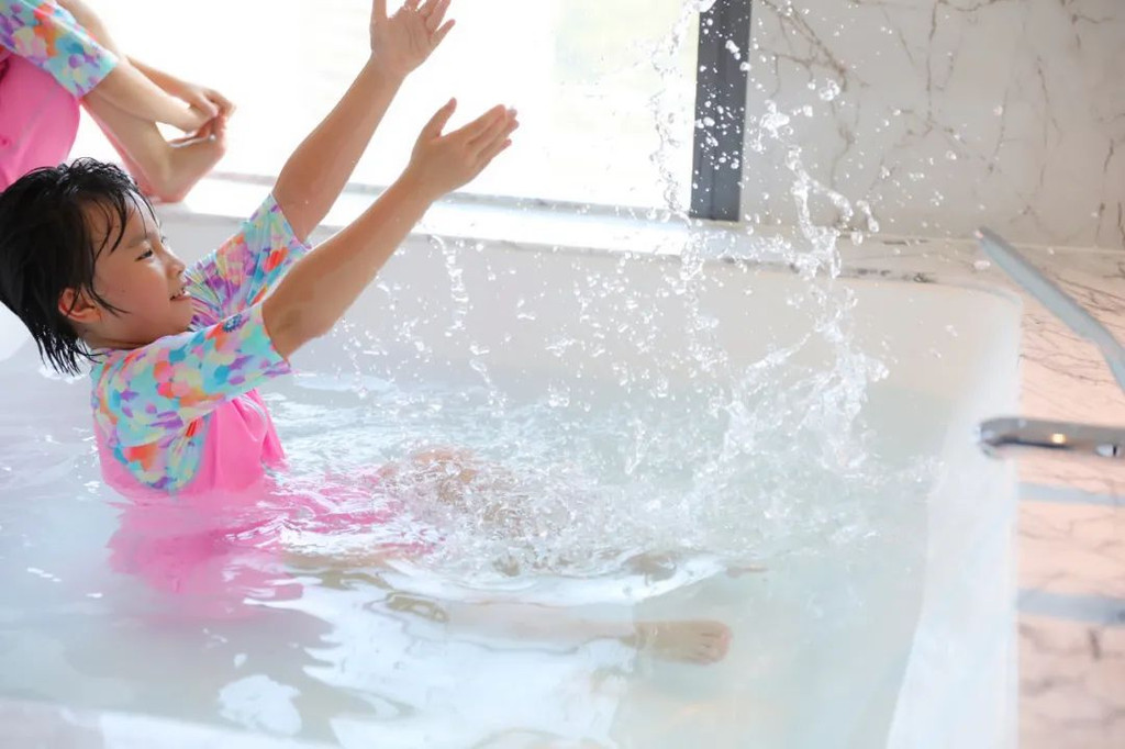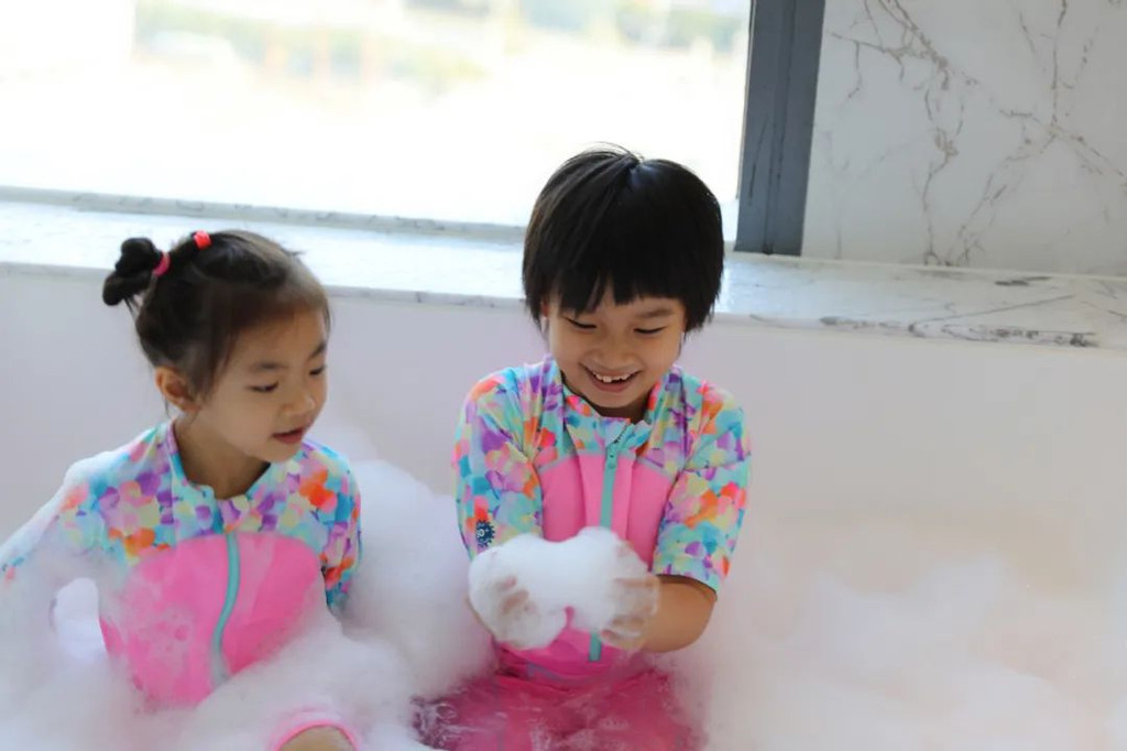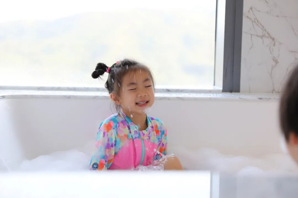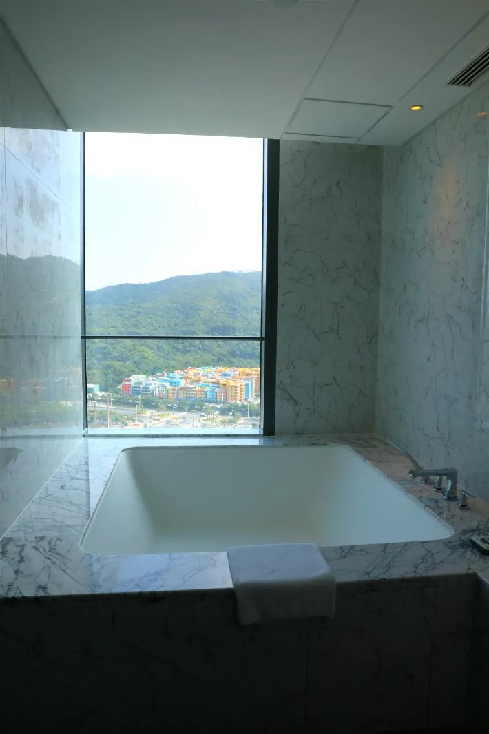 沙发办公桌都很齐全,爸爸带两姐妹去玩的时候,我还可以在房间里赶稿办公呢。超大的衣帽间,方便我们一家四口使用。此外,最迷人的就是这个四方形的超大浴缸,这可是两姐妹下午的欢乐乐园哦。