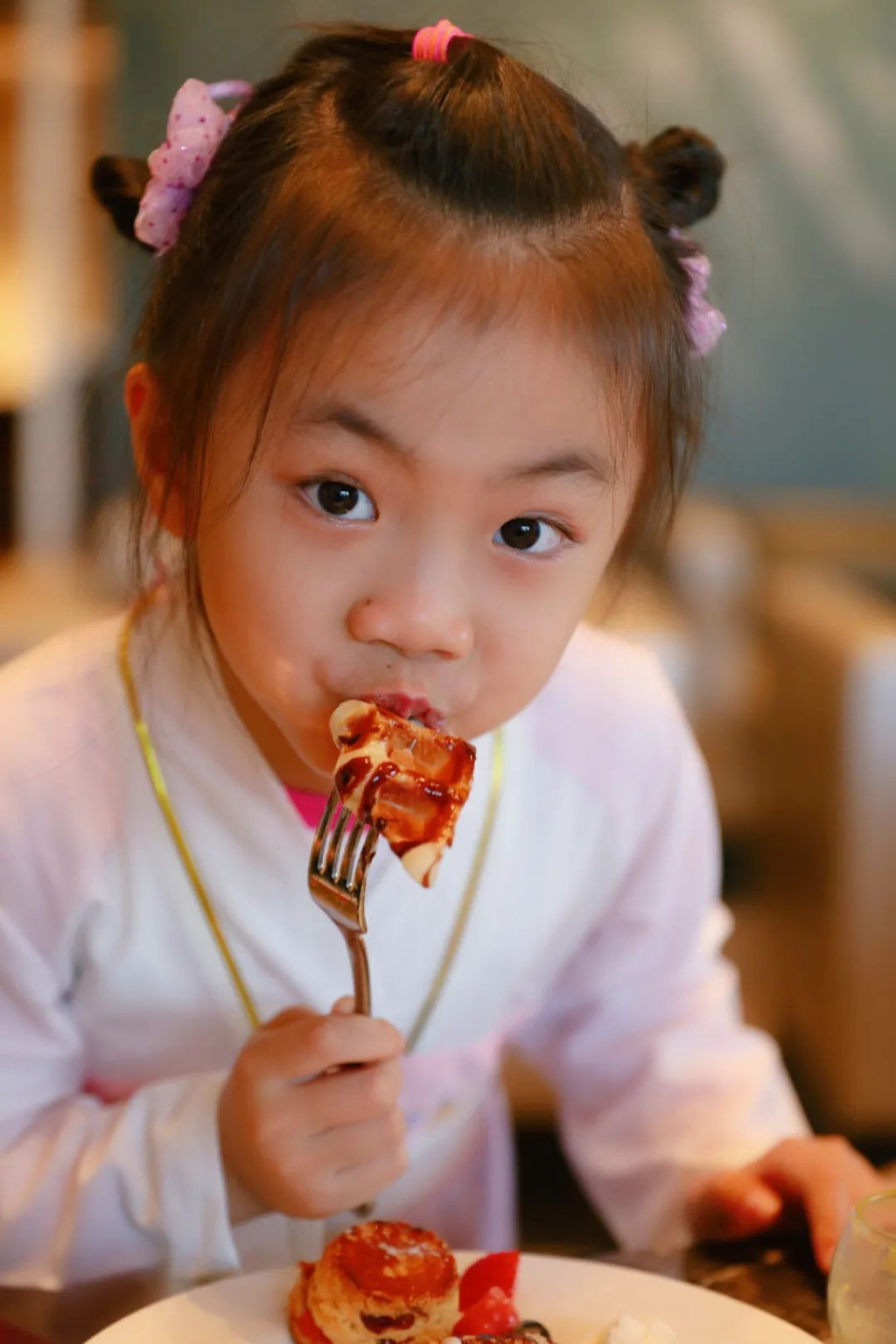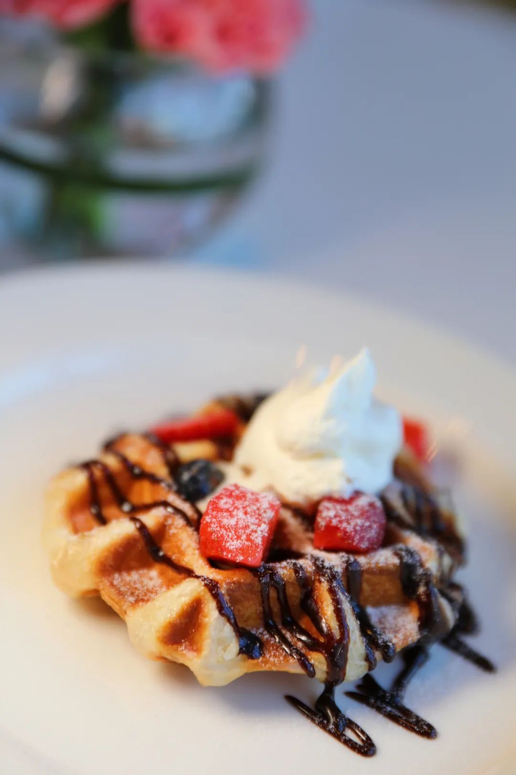 华夫饼,有着一种只有酒店能做的贵气,现烤好的华夫饼,外面甜脆,里面柔软,还有浓郁的蛋香味道,很值得推荐。两姐妹一人吃了一整个华夫饼,这饼真的是很有魅力哦。