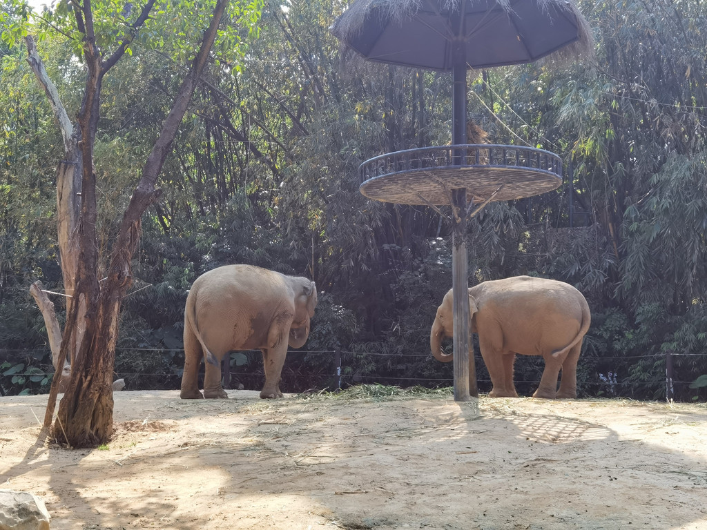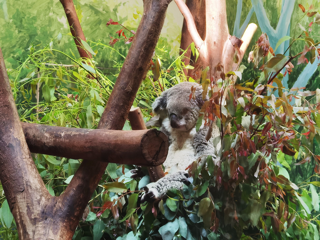 坐完小火车,我们的游园路线是这样的小火车下车点-青龙山-白虎山-长颈鹿-考拉园(吃饭)-大象乐园-熊猫乐园-坐环园缆车-非洲发现-火烈鸟岛-南门。青龙山里面是模拟恐龙的一个乐园,会发出龙的声音,有些龙还会喷水,因为小九害怕龙的声音,所以我们就快速通过这个了,之后下一个是白虎山,然后看完后,12点半左右我们在考拉餐厅吃饭(考拉餐厅选择性比较少,一个套餐大概在68-78-88左右),吃完午饭之后休息了一会,也到了小九要睡午觉的时间了,这时候推车就发挥重要作用了,小九自己在推车上就睡着了。对了,我们是吃完午饭之后,参观了大象园、考拉园,还有长颈鹿广场,看了四世同堂的考拉和喂了长颈鹿(50元一根树枝)。