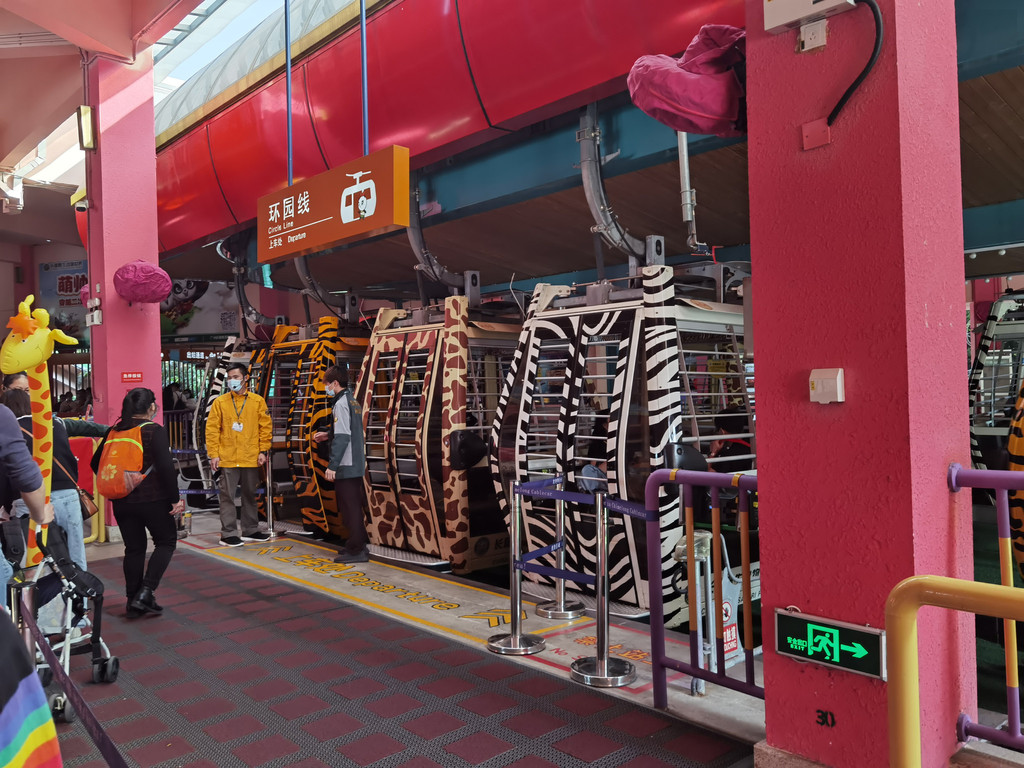 北门之后就是小火车乘游区,这个一定要去坐,小朋友可以近距离的接触到绘本里面的小动物,小九超级喜欢。小火车排队超级多人,这时候就体现出在长隆酒店住的好处了。我们5折购买快速同行的券,原价一张150元,包含小火车、空中缆车、4D电影快速通行。这个炒鸡炒鸡建议买,它起码帮我们在小火车以及空中缆车省掉了4个小时候左右的排队时间。太赞了。小火车一定要坐车厢链接下一节车厢的那个位置,一定要坐靠右边,因为大部分的动物都在右边。