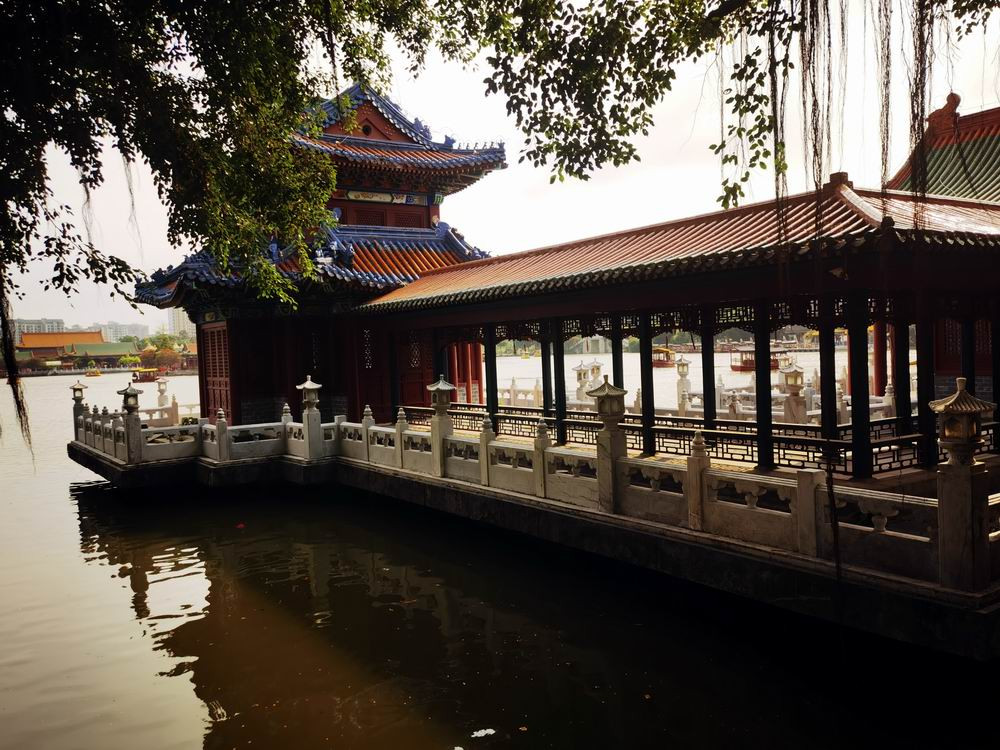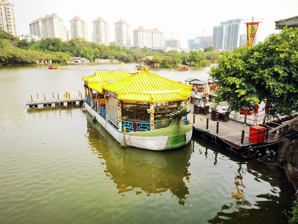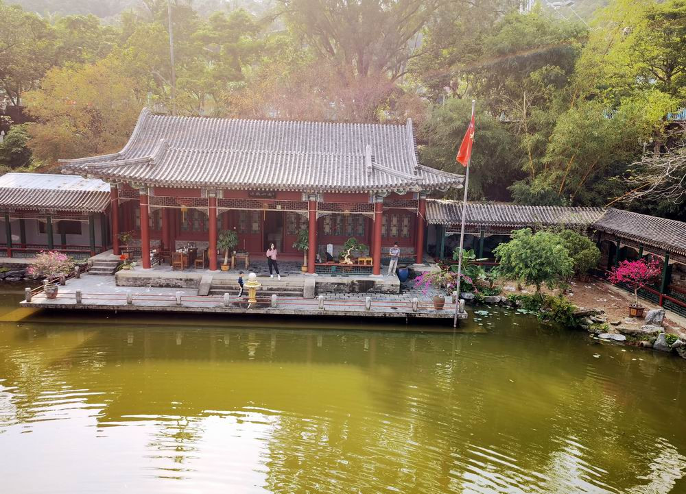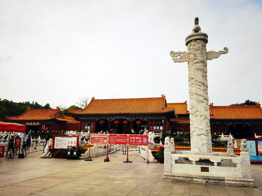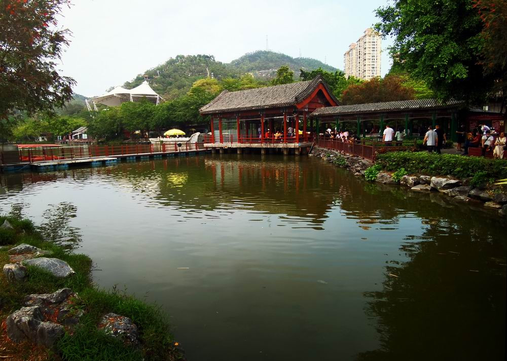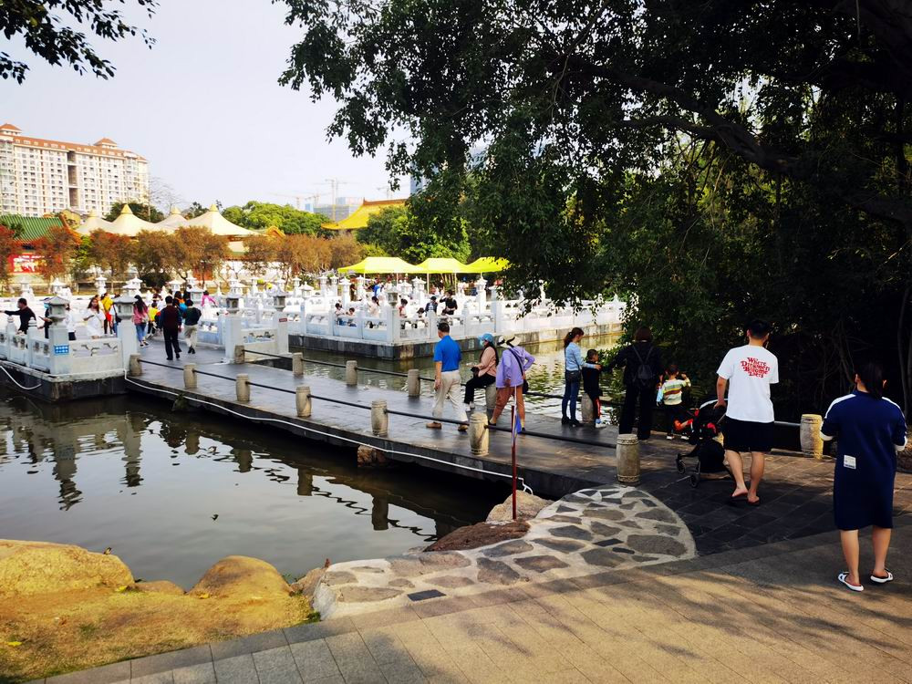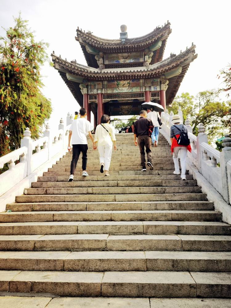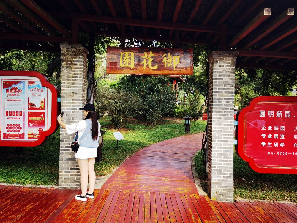 圆明新园于公元1997年2月2日正式建成并对外开放,它坐落于珠海九洲大道石林山下,占地面积为1.39平方公里,以北京圆明园为原稿,按1:1比例精选圆明园四十景中的十八景修建而成。照片摄于圆明新园的入口。