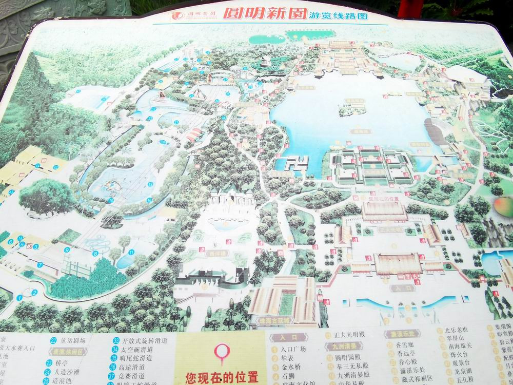 圆明新园投资6亿元人民币,是中国首批AAAA级景区之一。圆明新园融古典皇家建筑群、江南古典园林建筑群和西洋建筑群为一体,为游客再现圆明园。图为圆明新园的导览图。