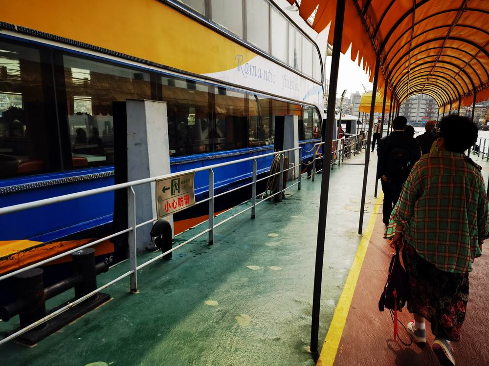 船舱分为两层,第一层是内舱,如果乘坐夜班船的话会有自助餐供应。第二层是可以拍照的顶层甲板。