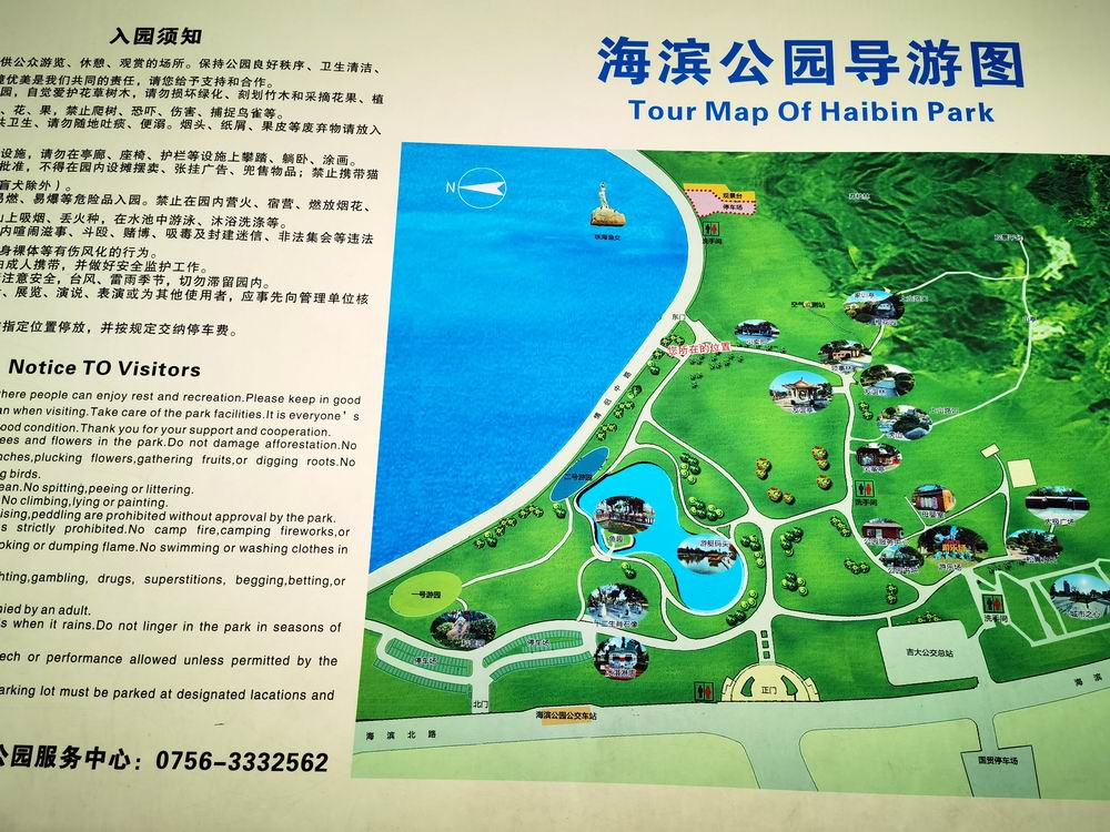 海滨公园南距澳门5千米,占用地13公顷。图为海滨公园的导览图。